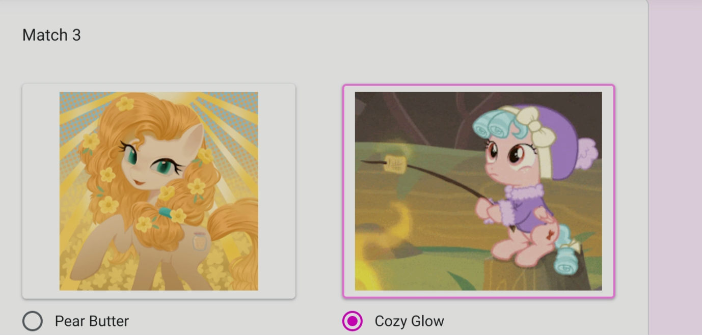 >>42735032i feel like coco beats the winner of autumn vs cheerilee anyways. snowdrop is more uncertain. could be a good shake up.