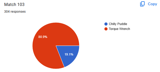 Jesus, the biggest mismatch in round 1 was a massacre. Chilly Puddle got beaten to death with a wrench.
