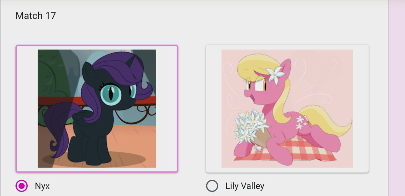 Post your match predictions for the next round>N Y X vs. Molestia>Velvet vs. Alt!Plapshie>Celestia vs. Chudmare>N-Moon vs. Mare-do-Well (kino villain vs. vigilante match up)>POOMPratura vs. Donk>Twinkle vs. FOTM>Dust vs. Zig>Floorb vs. Mom>Carrot Top vs. Toffee Swirl>Berrypop Fizzletwist vs. "Stealthy fluffy pony revival OC">Beipa Tureiru (hugslut) vs. Apulmom>Paco's favorite barbie vs. Cherry Jubilee>Some random barbieshit waifubait vs. BASEDJAKget (worst match up of this tournament)>Plappity vs. Stellar Flare(WWE, also known as Whore Wrestling Event)>Maud vs. Penka Po>Real Bad Stick Girl™ vs. CherBer
