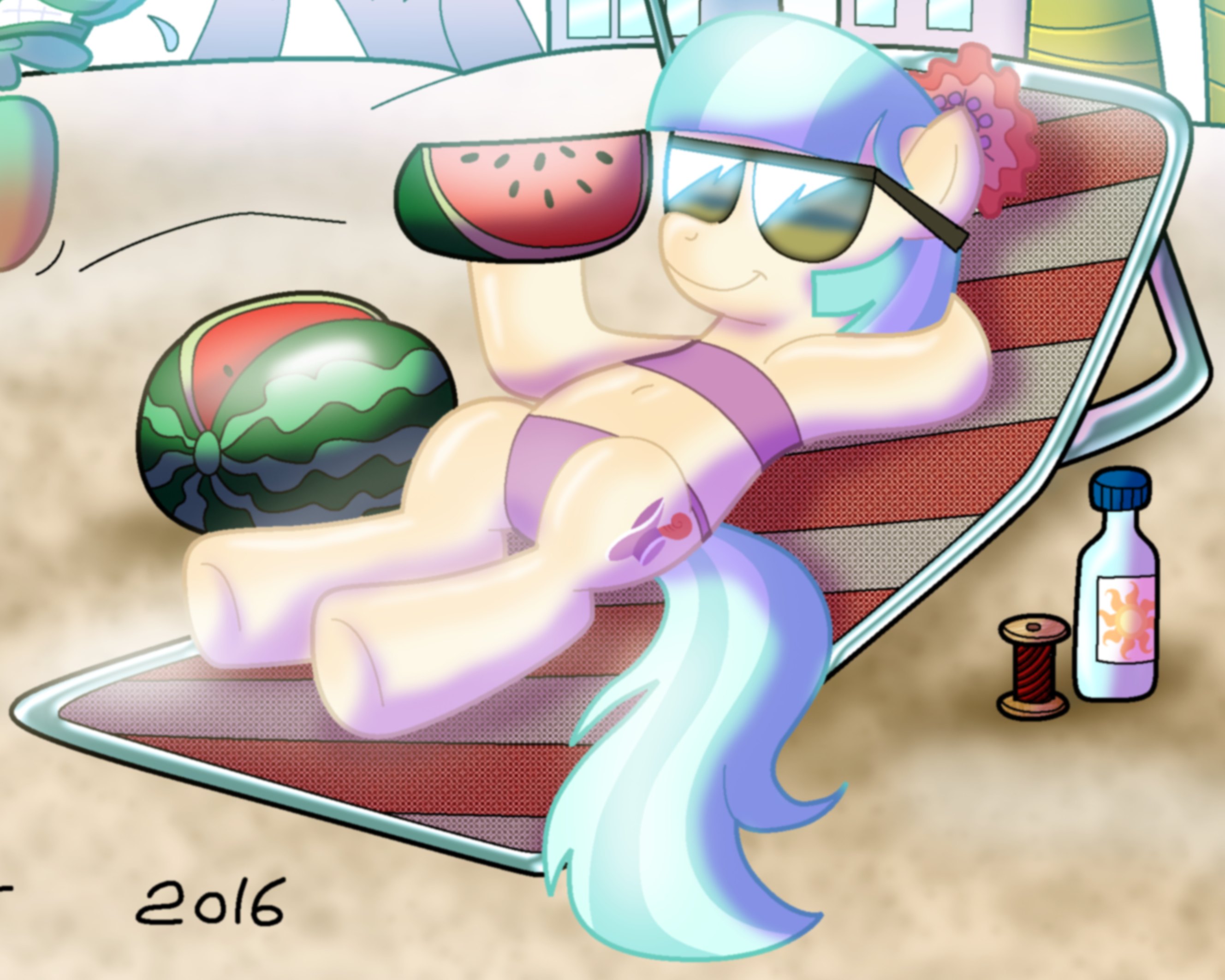 >>42743943Someone really needs to spend all of next year begging Pabbley for background mares in swimsuits.