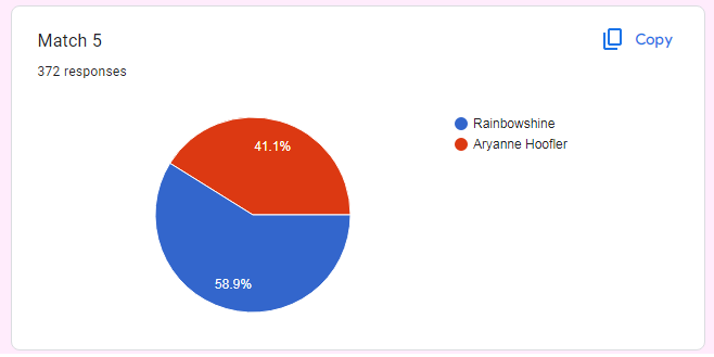 Man these were some toughies. I really hope Windy Whistles pulls it out since it'd be cool to see her make it to the top 16, but given how close the last round was that seems hard to believe.