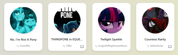 >>42748868Addedhttps://mlpchag.neocities.org/view?card=littlewitcher/Countess%20Rarity.png>>42749452Addedhttps://mlpchag.neocities.org/view?card=KnightOfNightmareMoon/Twilight%20Sparkle.png>>42749505Updatedhttps://mlpchag.neocities.org/view?card=Tiffin/THINGPONE%20in%20EQUESTRIA.png>>42749506And added!https://mlpchag.neocities.org/view?card=Snowfilly/No,%20I%27m%20Not%20A%20Pony.pngThanks a lot to everyone!