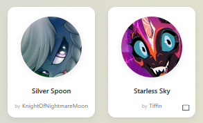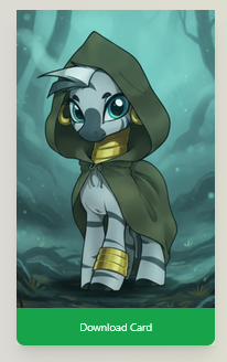 >>42757165Added, thanks anon.https://mlpchag.neocities.org/view?card=Tiffin/Starless%20Sky.png>>42757933And added too.https://mlpchag.neocities.org/view?card=KnightOfNightmareMoon/Silver%20Spoon.png