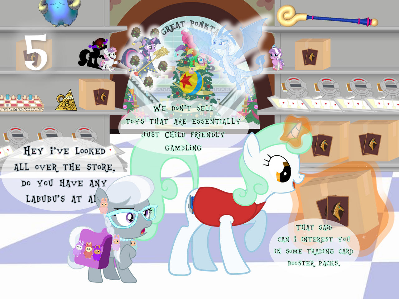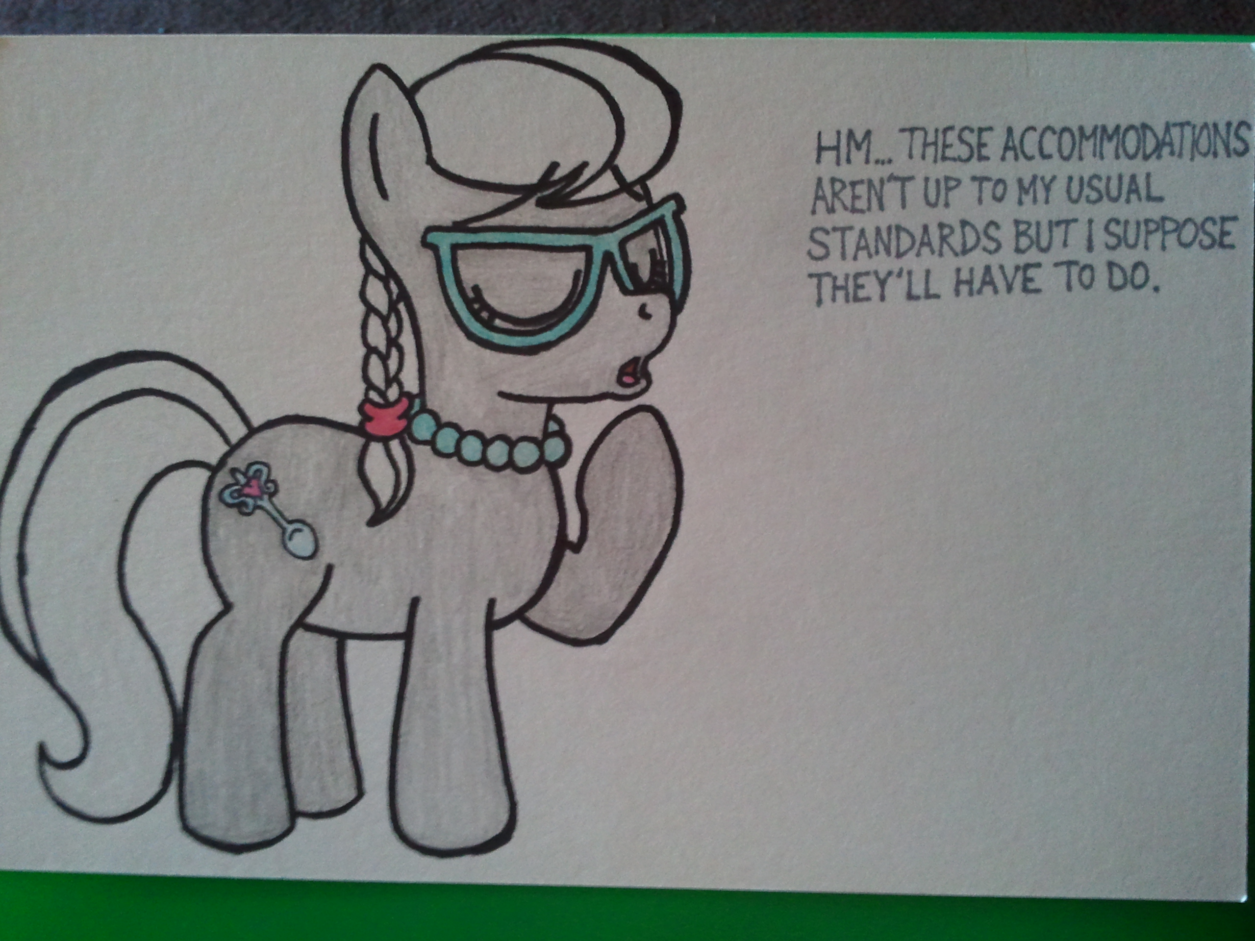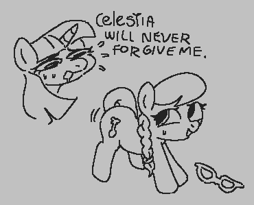 >before you this young mare advances>she raises her glasses on her snout,>casts a ghastly, unnerving grin on her visage>inside of you, you know for certain this is the day you will be stripped from your wizardry skills