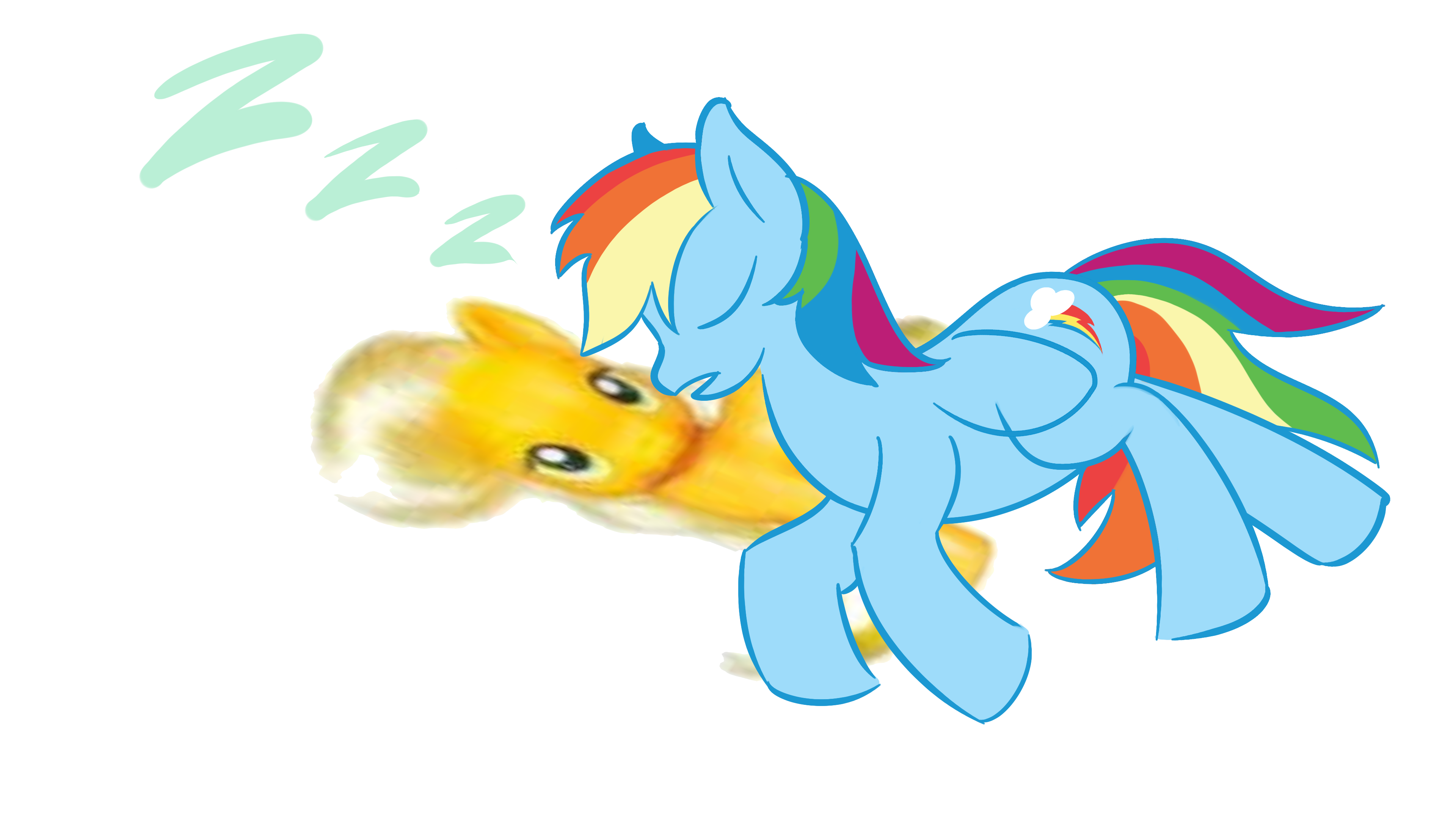 hi bale thank you for feeding rainbow dash the other week and sorry for abandoning her here for so long, and now I have to rest for more waging again tomorrow so I drew you the dash portion of appledash and phoned in the rest because i'm tired