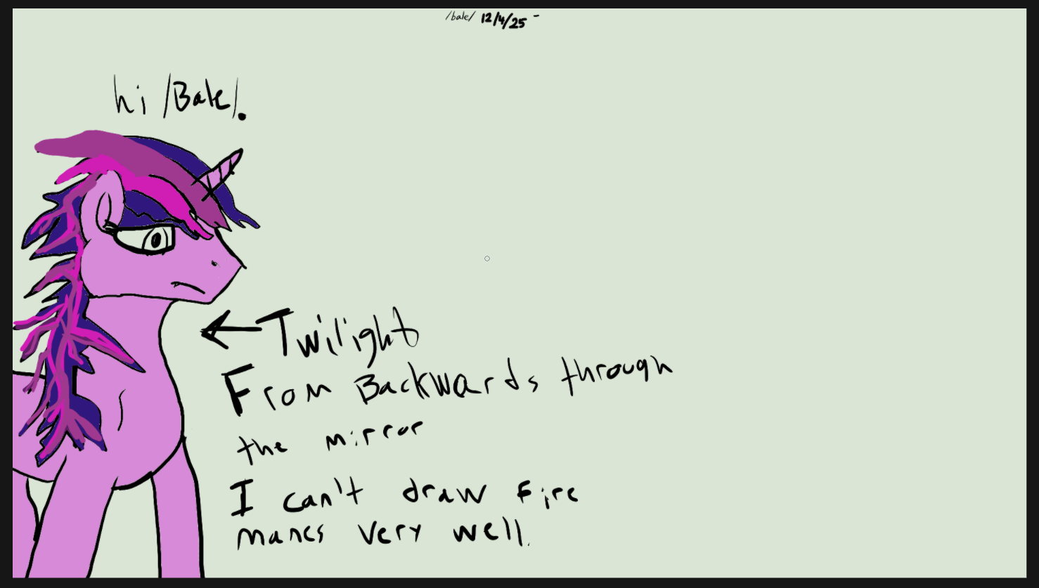 Welcome friends, ITT:We make and share pony art, with absolutely no pressure to deliver anything that's technically good (besides having ponies in it, which makes it good by default)Make something, share what you've done, and give feedback and motivation to help us all keep improving and creating!This thread's focus is art, but beginner or low effort content of any kind is welcome here. If you do want to post about something else like music, gamedev, or crafts, though, just note that you may find better help and feedback posting it in the /create/ threadAre you an experienced artist? Leave some tips, feedback, guides, or tutorials, they're well appreciated here!Guides, tutorials and resources! Start here!https://mares.horse/balehttps://ponepaste.org/8268Draw with other /bale/ anons!https://magma.com/invite/DXPPI_ZG/bale/ videos:https://pony.tube/c/bale_stuff/videos/create/ thread (for bigger art projects and all other types of content):>>42803188Previous /bale/ thread:>>42758239