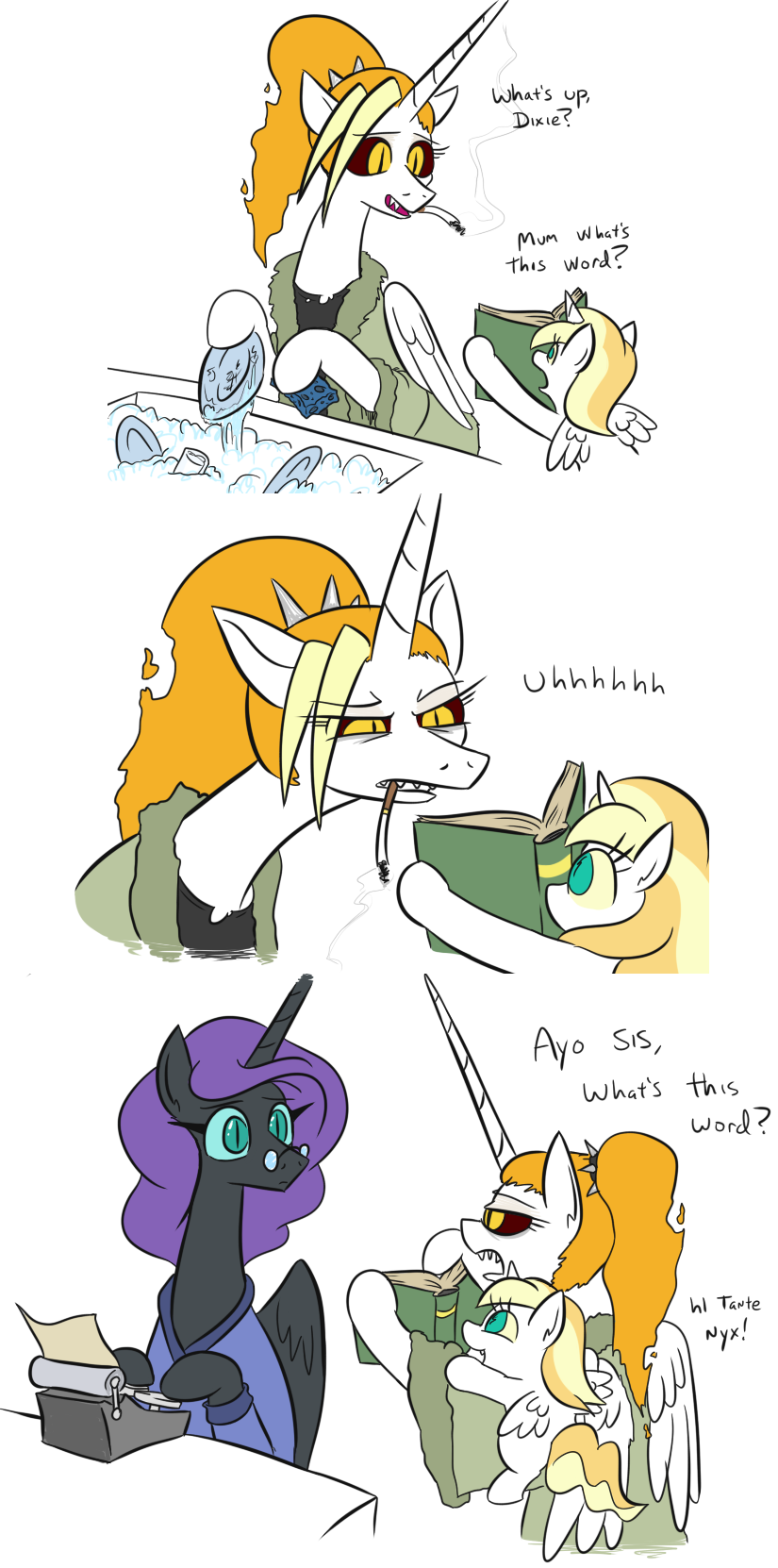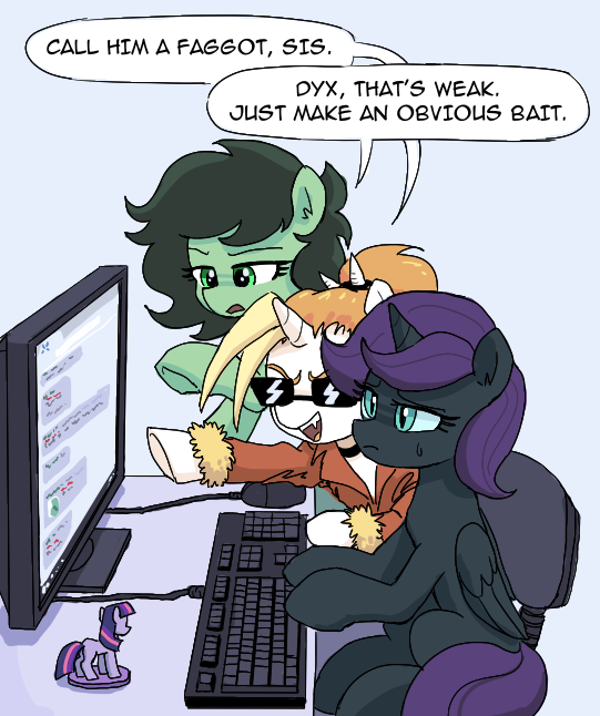 >>42851660Good girls, teaching Nyx how to post on 4chan.