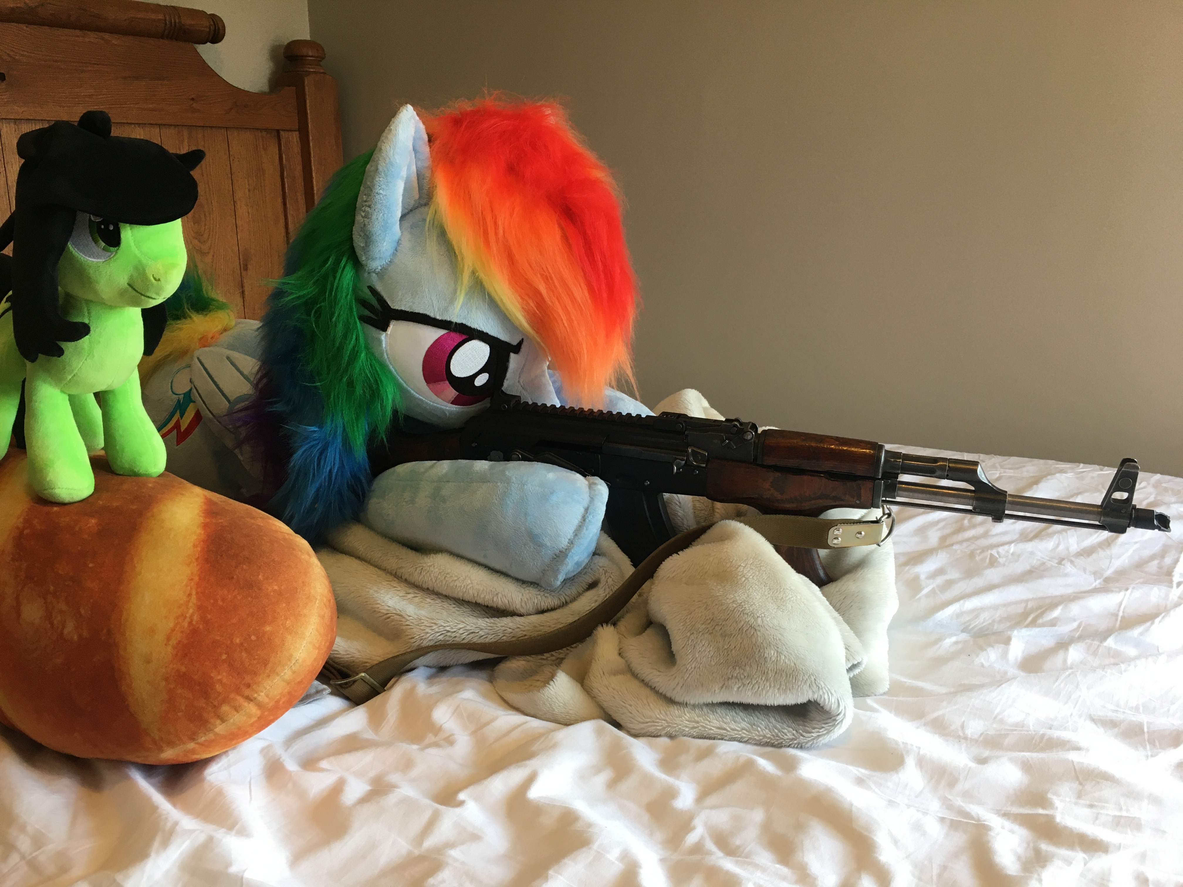 >>42869676Anon, plushes are built for snuggling not sitting on a shelf>but they’ll get dirty and break!And you’ll get a goods night rest and can always clean/fix them. I currently have a Olyfactory Luna and a “official” Rarity plush and they’ve both been very good to me. I’ve only had to sew Luna’s mane part back on once after it started getting loose.