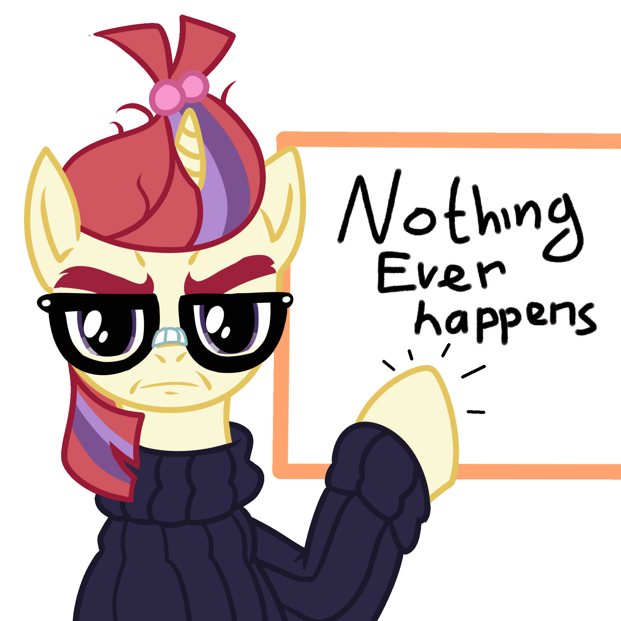 >>43005040I don't have it handy, but I have a pic of Moondancer as she's screaming about how the bug pony attack (S2? S3?) was an inside job by Celestia to cement her power. And hell yes I'd hang out with her.