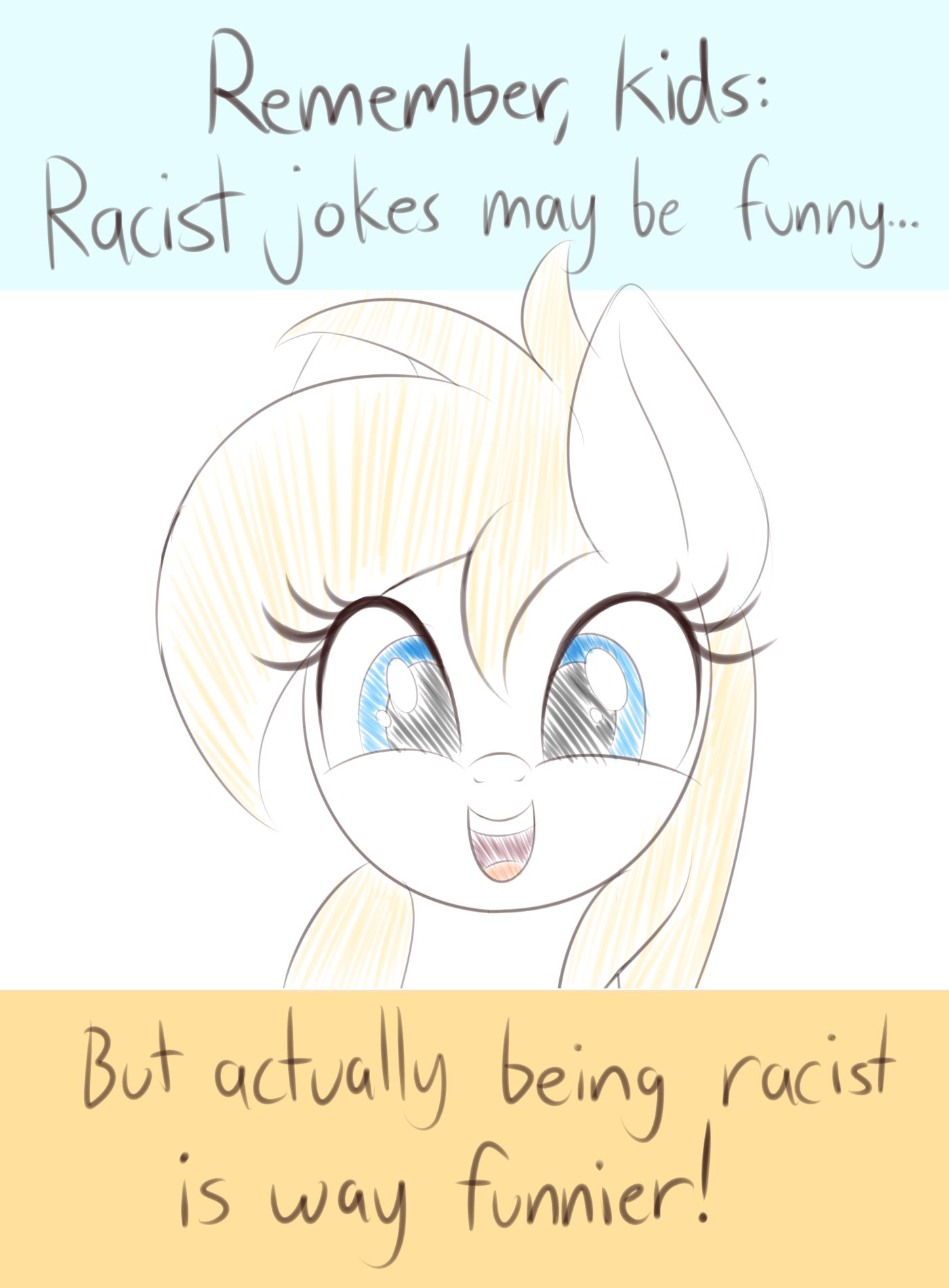 >>42956793This is just sunset shimmer with a white coat and a single nipple for some fucking reason.>>42955798That's right, goy! The people advocating for white people to return to their traditional beliefs and reject slave morality are the enemy. You, the one who wants to torture and kill them on behalf of your benevolent Jewish god and overlords, are the good guy!