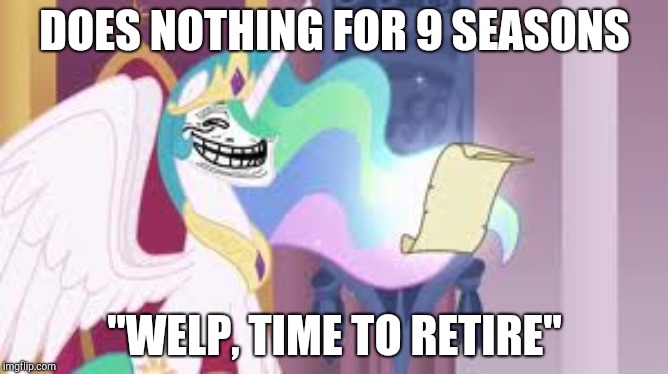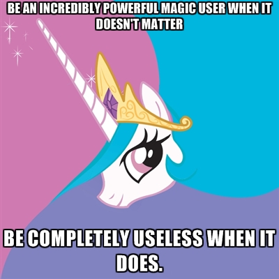 >be wise ancient mentor pony>not meant for fighting, only for spiritual guidance>get pigeonholed into being equestria's superman>now every threat to equestria needs to go through you to count as credible to the audience>get blown out in every major conflict as a result>supplanted by twilicorn and rendered totally irrelevant except as a stat check for the villain of the seasonIt was never meant to be like this.