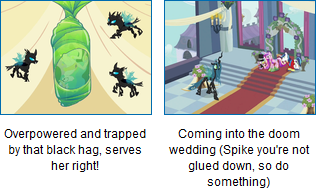>>42914951The episode where all of the mare's become professional wrestlers and there's a storyline where Celestia (the Dawnbreaker) of Equestria, jobs to Queen Chrysalis during Hell in a Cell, which puts Princess Celestia in the hospital. So Twilight Sparkle (The Purple Pupil) has to train with her friends and win a match against all of them before taking on Chrysalis herself in a Royal Rumble, Elements of Harmony (Twilight and her Friends), vs The Hellish Hive (Chrysalis and her team of fake versions of Twilight's friends, she magically made out of wood).
