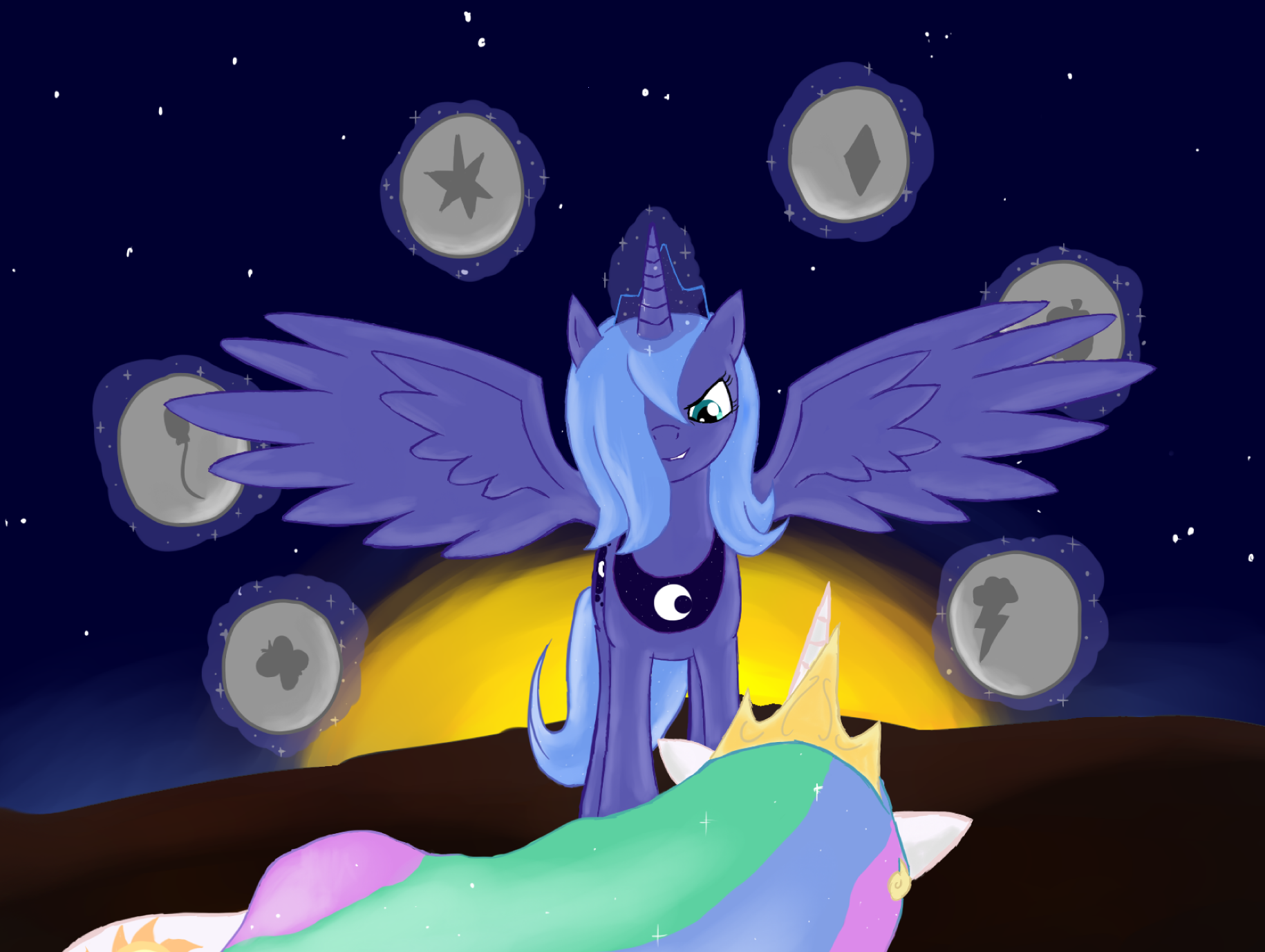 >>42881833>nightmare moons massive sweaty moons turning celestia into a 2d object under there immense weight