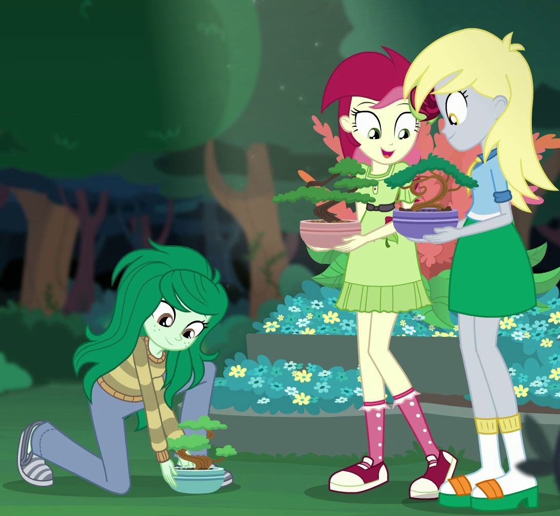 Wallflower the main antagonist of Forgotten Friendship. She's an introverted and spiteful gardener who holds a grudge against Sunset Shimmer for being so popular despite her past as a bully. Using an Equestrian relic, she can erase other people's memories.