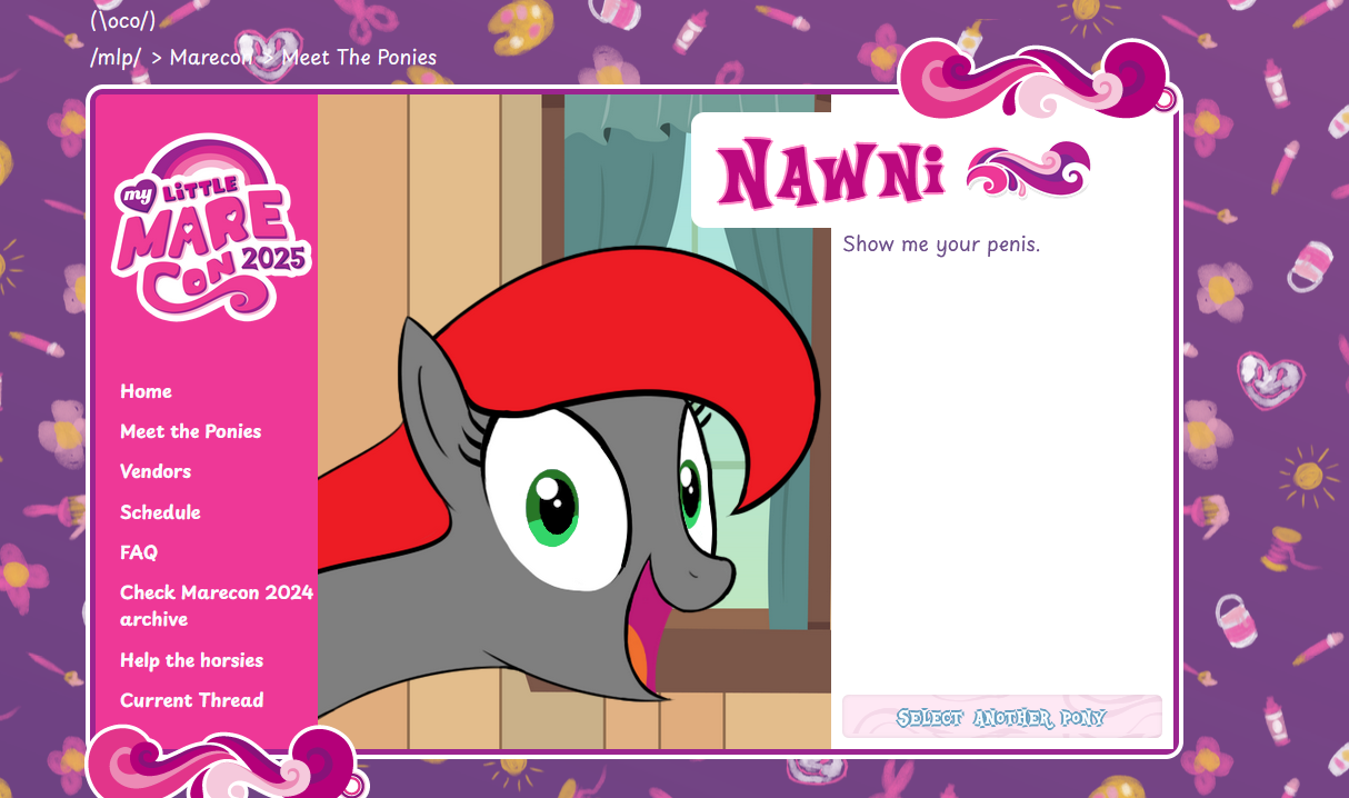 A bit later than usual, but it's time to start the planning for /mlp/'s other annual online con, marecon!>what?marecon is an online cytube con run by and for /mlp/ersons, similar to /mlp/ concheck out the website for an archive of events from previous yearshttps://www.marecon.live/>when?the date is to be determined, it could be any weekend from late January to early April (probably sometime in February or March?)feel free to discuss in this thread which date would work best for you, but the main determining factor will be what works best for the anons helping host the con at marecon HQ>where?marecon HQ! it's a magical place where a bunch of smelly anons get together to run the con and host panels. We're looking for volunteers to help out, if you're interested fill out this form: https://forms.gle/j9sYyhcqBs93r9Ex9for everyone else, links to the cytube channels and more information will be available at https://www.marecon.live/>why?idk it's fun>who?I'm purp, marecon's organizer, but marecon is made possible by anons like (You)! Come help us make marecon 2026 something special! Keep an eye on the thread for details on the help we need, give suggestions or offer help in here or feel free to contact me at purp.pone@protonmail.comthis year I'm also going to try something new for volunteers; I'll still be asking for help and input in the thread, but if you'd like to be on "speed dial" for any help we might need, here's a form you can fill out so we can get in touch! https://forms.gle/kZB9SBVQEW2yLF7cAofficial updates only from this tripcode
