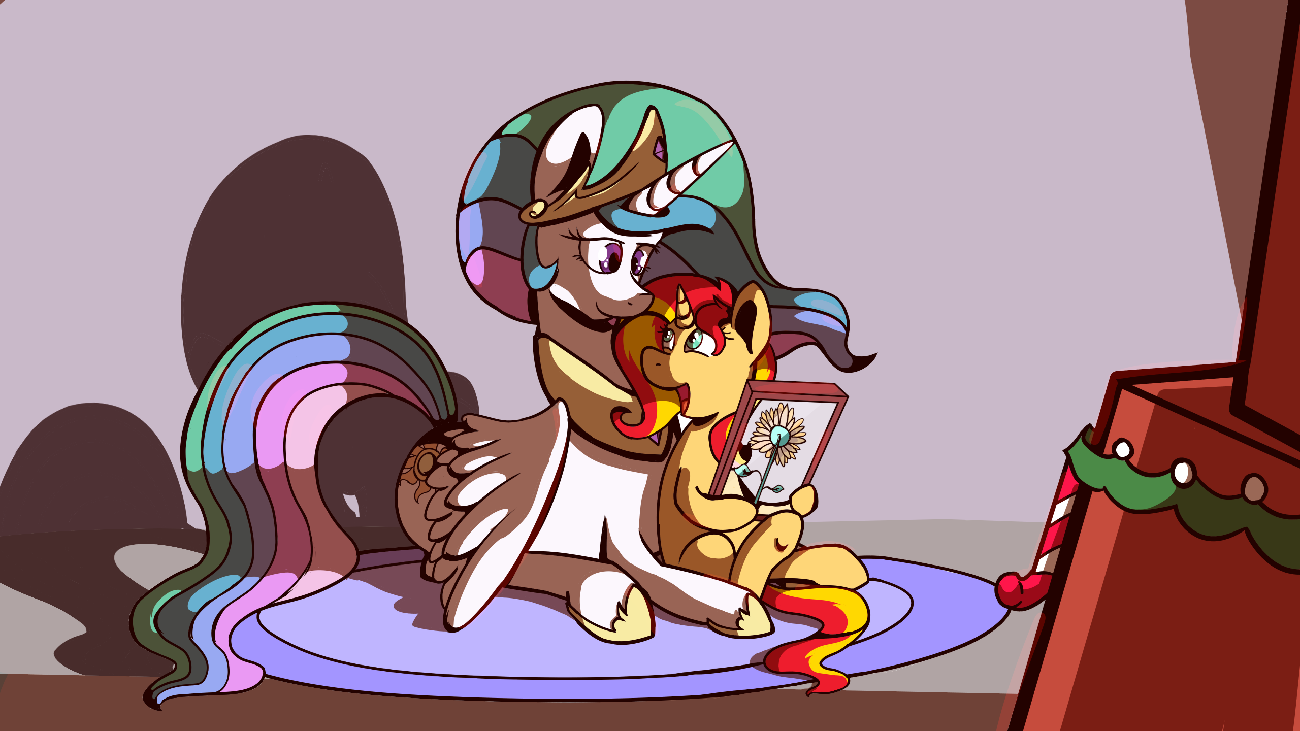 >>42888956Sunset getting a pressed sunflower from Princess Celestia for Hearth's Warming, please.