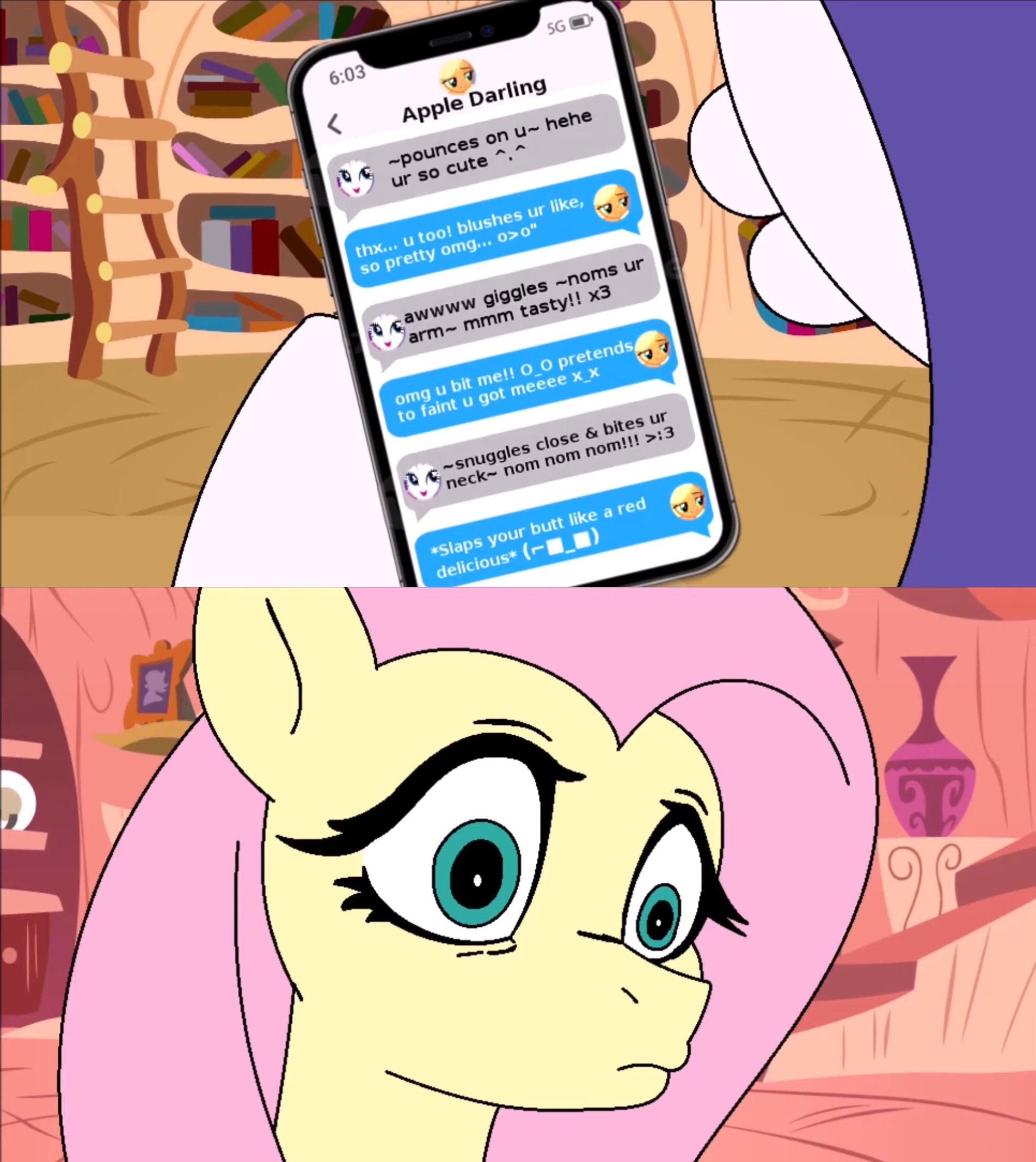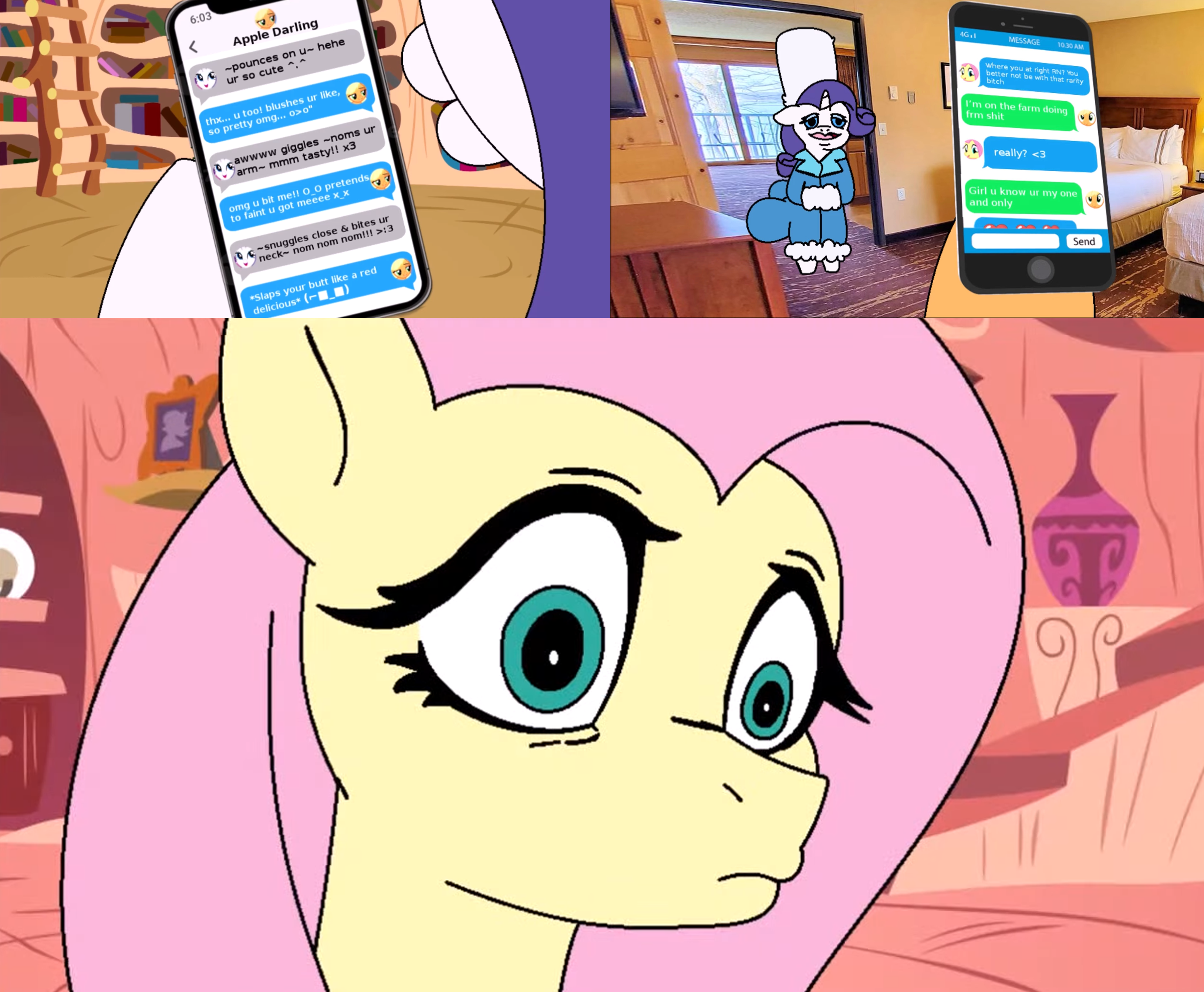 >>42888260>>42888284>he forgot Fluttershy's reaction when she saw Rarity uwu speaking with AJ on her phone in Death of Twilight Sparkle