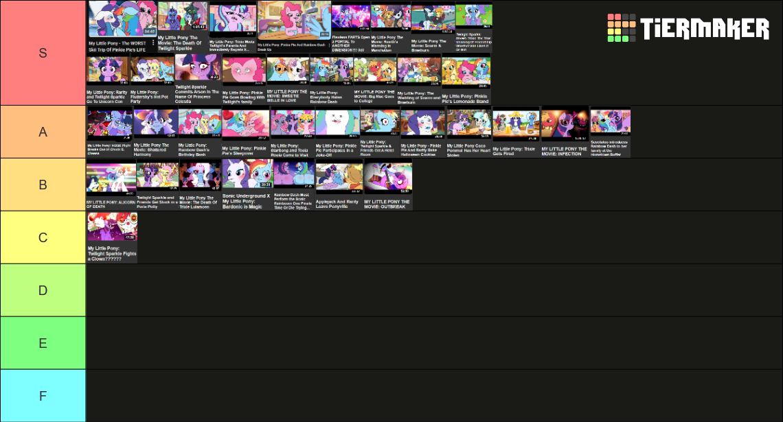 >>42888321Tamers has been curning out banger after banger for MLP lately. I may have Alicorn of Death only in B tier here but I think its wedding scene was S tier. I debated bumping it up to A solely for that scene.