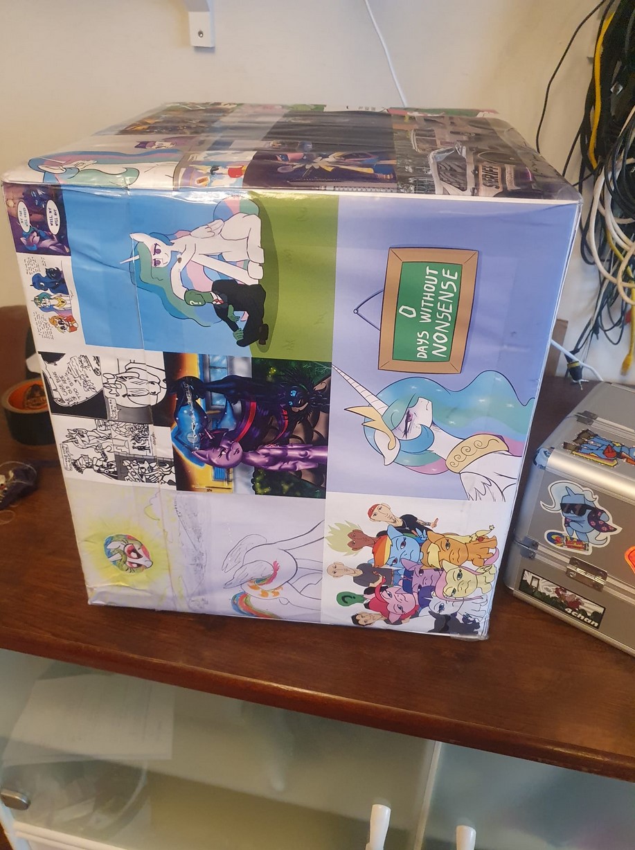 >>42889743>>42889778Oh wow, guess the spirits of Hearthswarming were with me on this one. Thank you for the giveaway Piping, and thank the council of ponkas for their blessing. Don't worry about the sticker, I'm fine with all levels of spaghetti on the box.