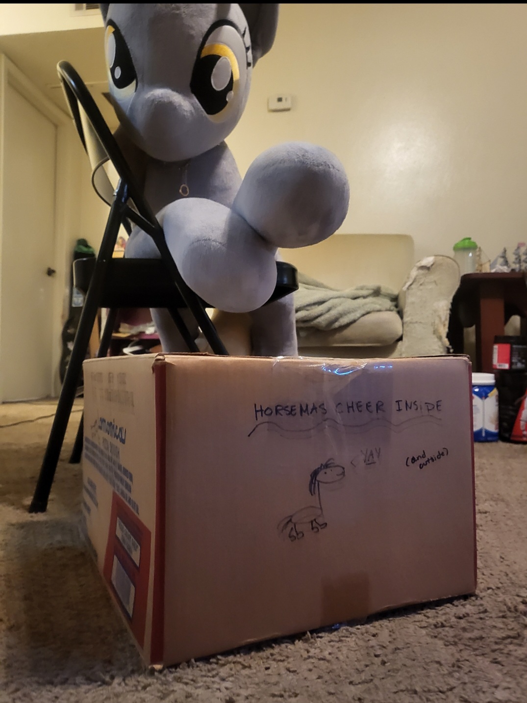 Hello Diamond Tack the Yak, seems I've had a sizable box of cheer land on my porch a couple days early! Derpy and I are really excited to see whats inside! Are the gifts inside wrapped or should I leave the box unopened for the moment?