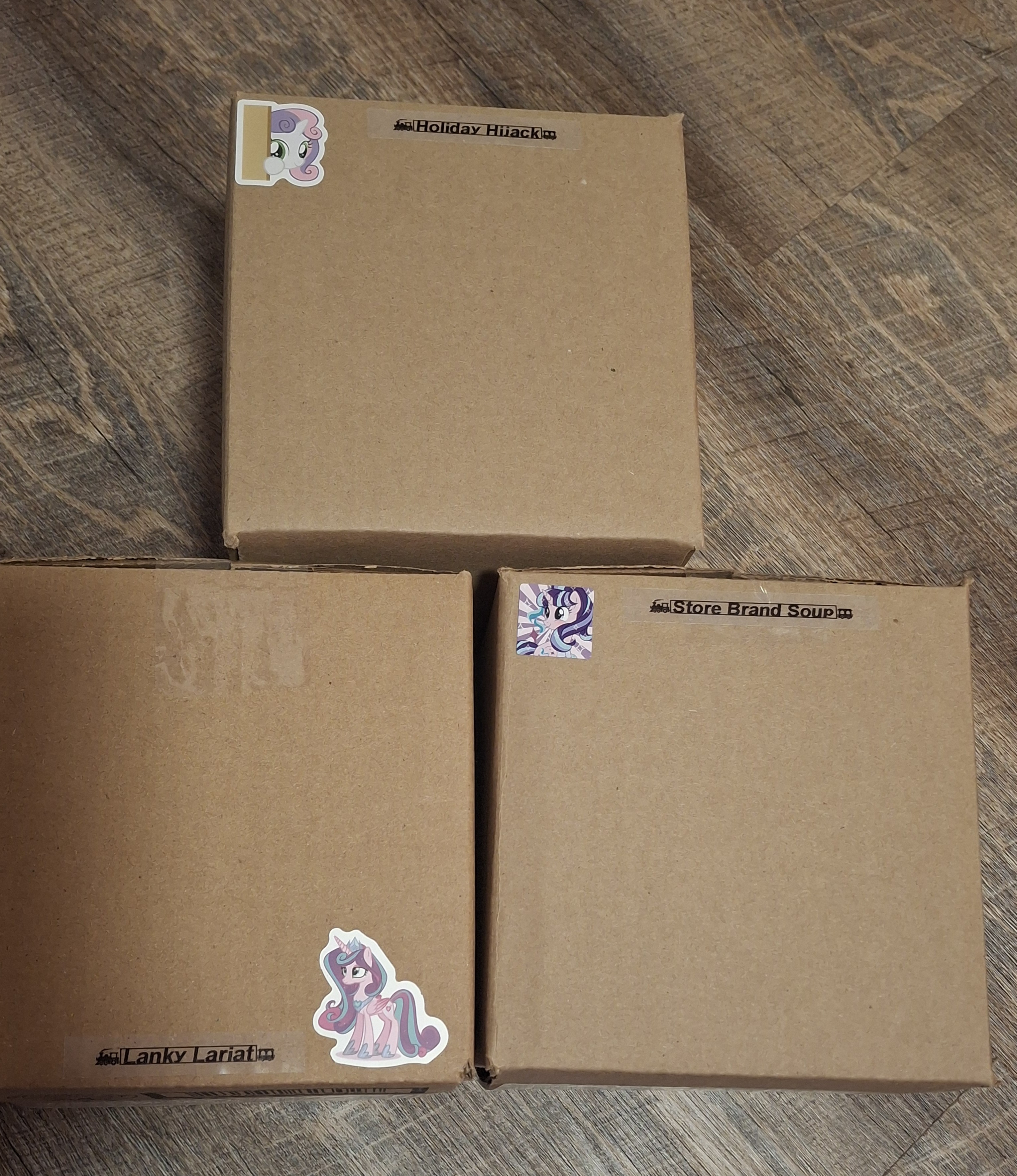 >Store Brand Soup>Holiday Hijack>Lanky LariatFrom my entire family of Ponkas and I, CONGRATULATIONS to you 3 lucky anons for winning my first ever giveaway! I will be contacting Pony Claus shortly for your dox to send you all your new mares. Let me know in thread or via Pony Claus if you are not ok with a singular small pony sticker on the outside of your box. Thank you everyone for joining, I enjoyed reading about your favorite songs from the show!