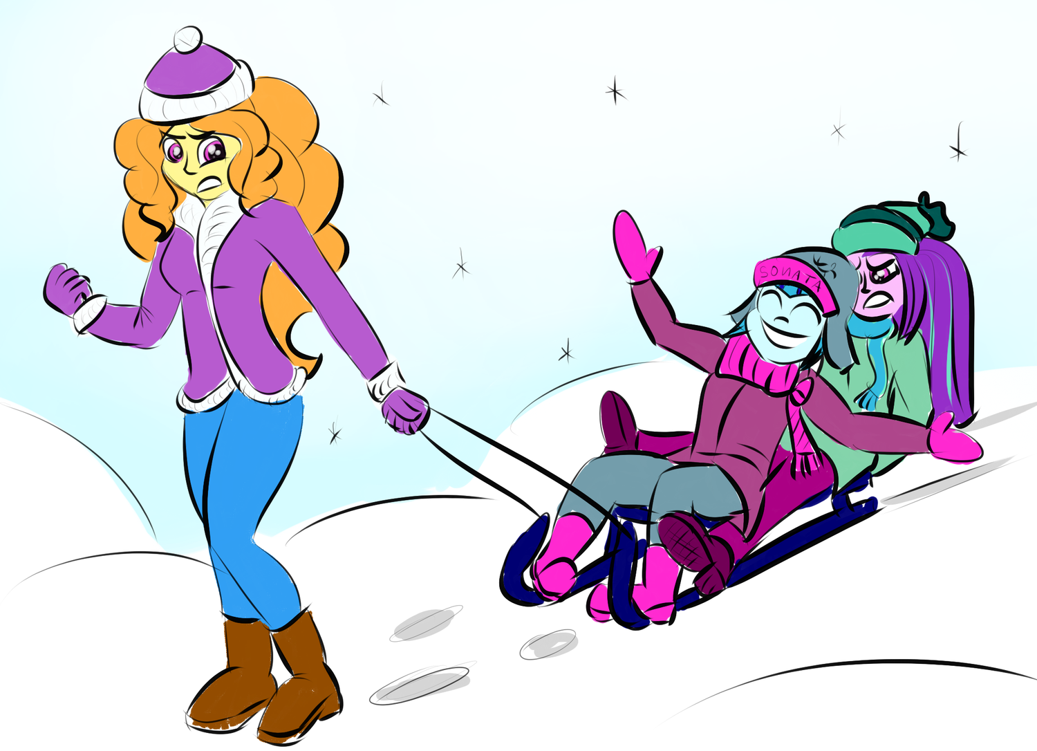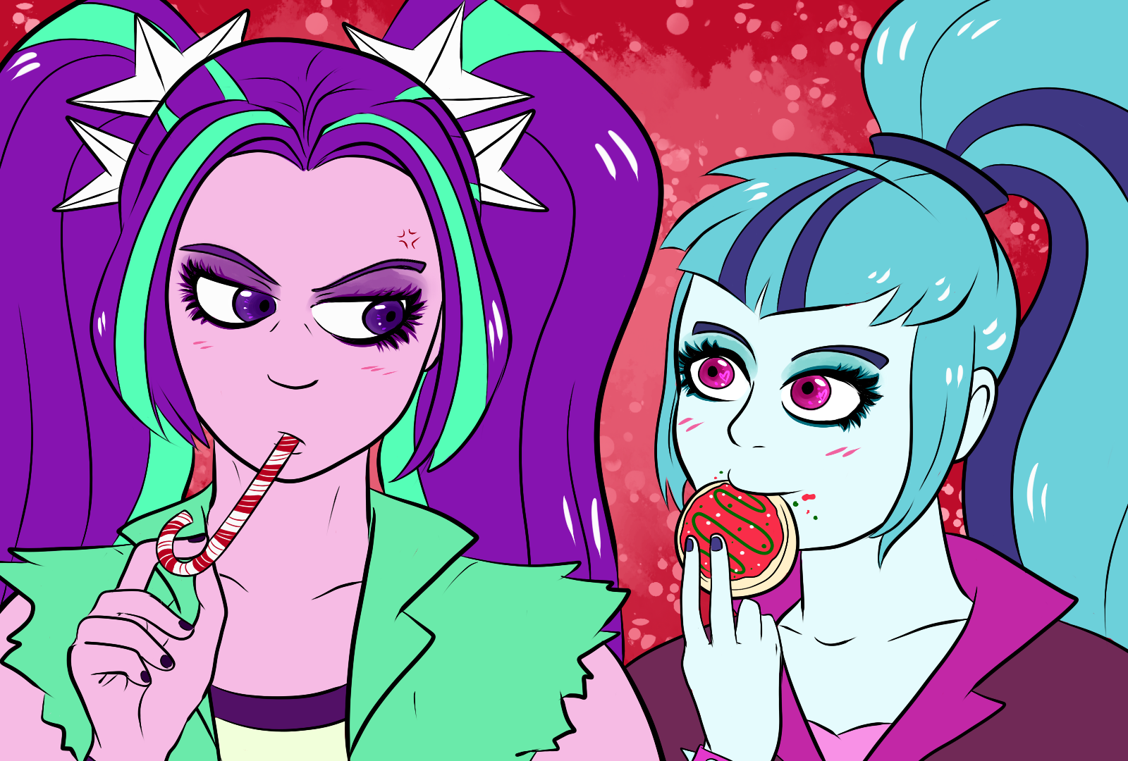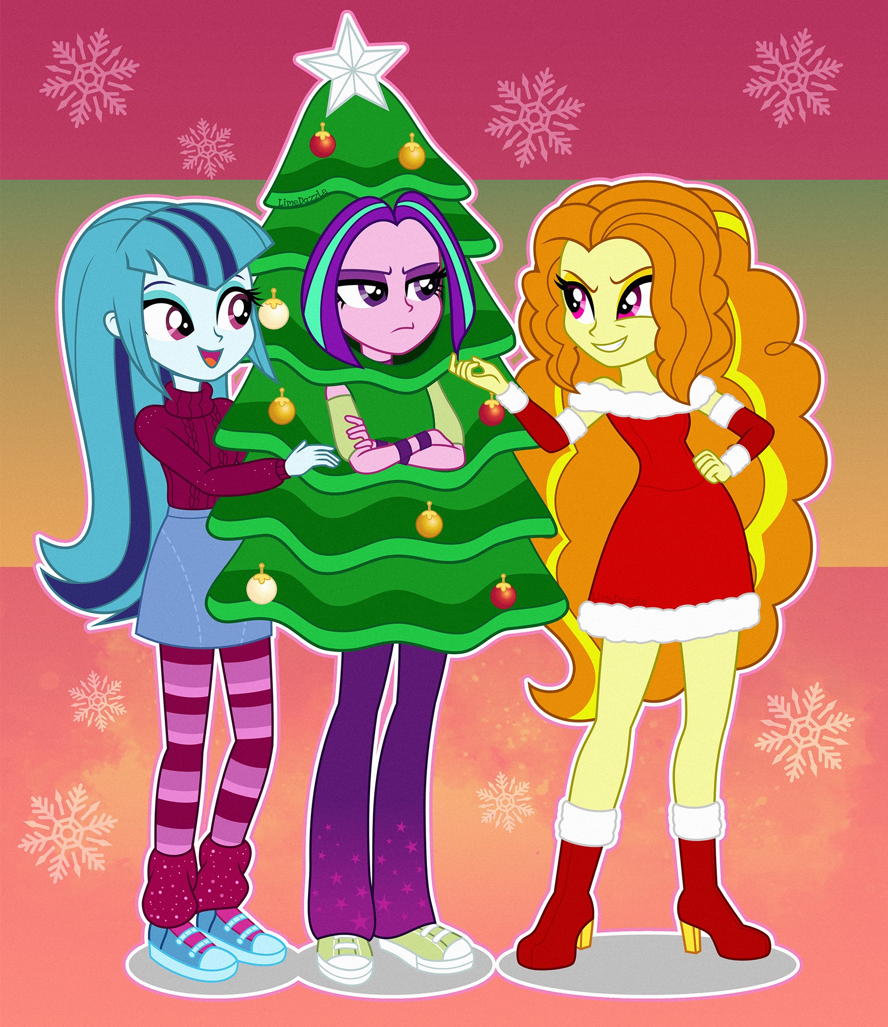Happy Hearth's Warming, and Merry Christmas. Sorry, I wasn't checking you guys when you fell off.That one artist who made me like the Dazzlings, Funble, just drew them on stream a few hours ago, but they're not really appropriate for the holiday, so I'll post his hyper pregnancy sketches in spoilers tomorrow or something.