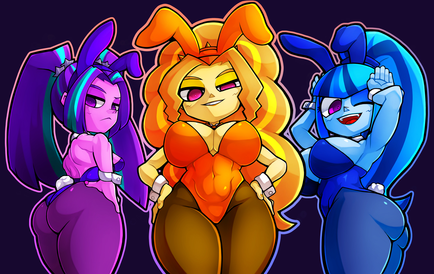 >>42901099Alright. Some of you may remember his work. He's going to do some Patreon vote or something to see about finishing them anytime soon, but I'm definitely going to vote for them. As usual, their belly sizes go from Adagio Dazzle to Sonata Dusk to Aria Blaze, while bust sizes go in the opposite order and Sonata has the widest rear. I think Adagio's my favourite; there's just something hot about a girl with a huge maternity and almost no bosom.