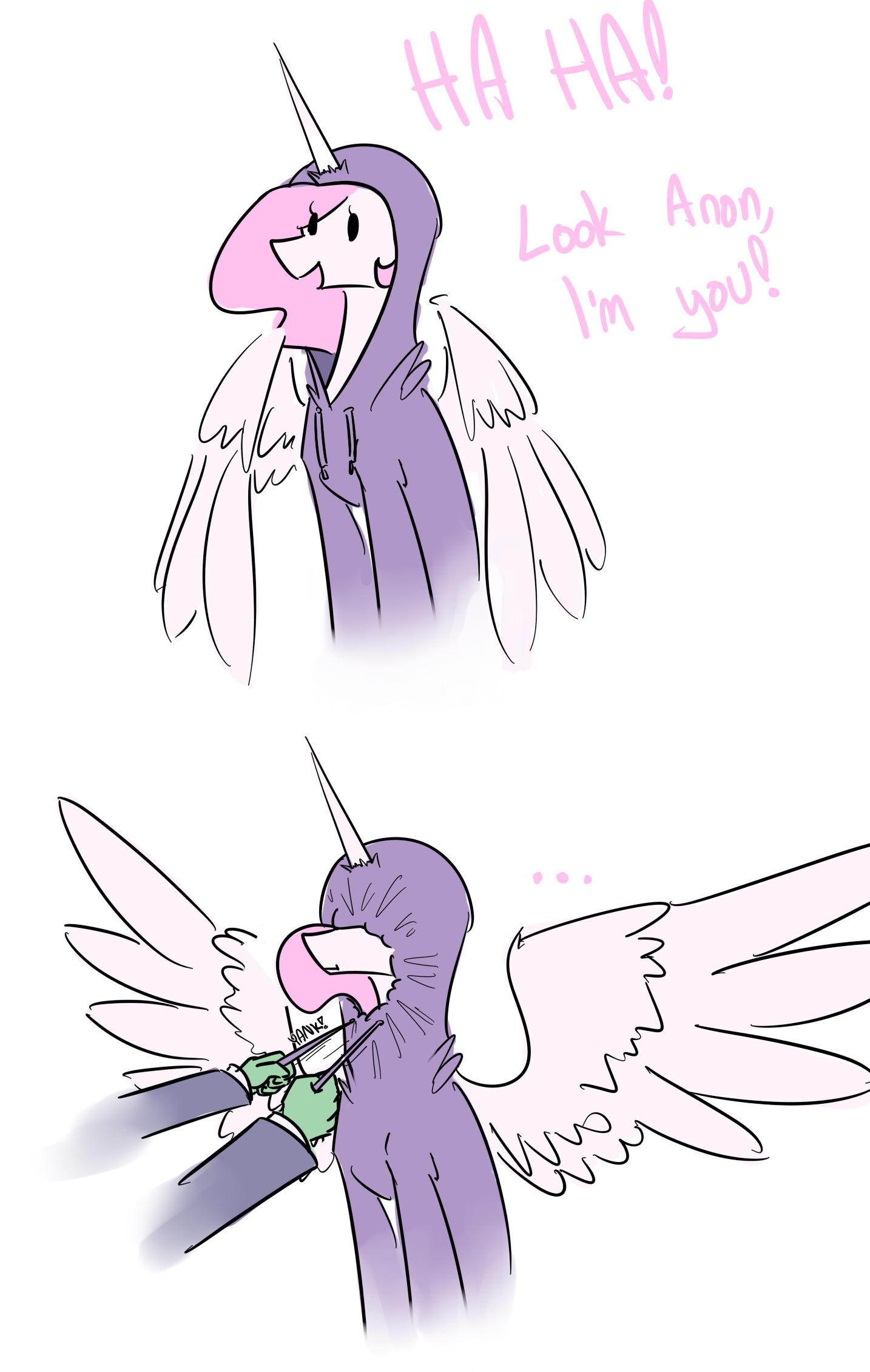 >>42944381actually, I'm the artist. I was curious becuase the filename is labeled as Kleki, which means its the image version not posted on Derpi and is the one I send to a few friends, just curious how they/you ended up with that version.