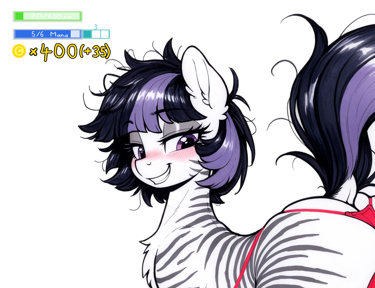 >>42968473>>42969014>>42969832>>42969872>>42970874"Knifepoint… You're beautiful." You can only dreamily utter at the mare looming over you, her silhouette crowned by sunrise. The giant zebra blinks a couple times in reaction, and you see her blush deepen slightly before she adverts her gaze for a second."Yeah, sure." She chuckles. "Would have been pretty sad if I wasn't to your taste after all this, right?""That's an understatement. The light of dawn on our curves is making you absolutely divine right now…" You grin at her as you get on your hooves. "But yeah, I'm feeling like taking a break today. I'm thinking about going to the beach and finding something tasty to eat for lunch. Would you like to go with me?""Sure." The mare lazily stretches her legs. "We got to scavenge old crates from shipwrecks, brought some bad payer to the law, and stopped some rat tamer from stealing stuff in just two days. We deserve a little break. Let's go to the beach.""Are you sure?" You wiggle your eyebrows at the mare. "Since it's just the two of us, this could be considered a date…""Hearty, I rid your dick two night in a row." She tells you mockingly. "And I'm probably gonna do it again at some point today. We can call this a date if you want.""Alright then, but jokes aside, maybe it isn't something so trivial." You argue. "We've been working together for only a short time, and we're getting along very well. Maybe this could be the occasion to test the waters.""Huh…?" The huge mare shifts on her side, looking at you quizzically. "Really, though? I mean, we're casually fucking each other and having fun already, so I'm not sure what kind of waters you wanna test. Besides, frow what I saw at Starpoint Keep, you're already in that bookish mare's pants too, so it's not like either of us is looking for commitment, right? I don't know if you've noticed, but I'm not really the type of mare to go… official in any way.""Ah… Well, let's just go on this date already, then!" You shove the matter aside for now.After a bit of breakfast, Knifepoint decides she needs to find herself some better swimwear than her yellow sack. Though, you decide to make her task a little more complicated, growing the mare to a towering 15' feet tall for the day with your Sforzando spell. Your friend is still somehow resourceful enough to find enough fabric and straps in the harbor to craft herself something more than decent. There are even several styles she could go for. She asks your opinion about which she should make herself.https://files.catbox.moe/9wadj0.png"Good thing we're going to the sea." Knifepoint comments. "I'm not sure any other place can handle me at this point. But hey, I feel like your spells got even stronger, Hearty. If you can cast this one a few more times, I don't think there would any quest out here who could resist me. You and I could make some serious coin!"