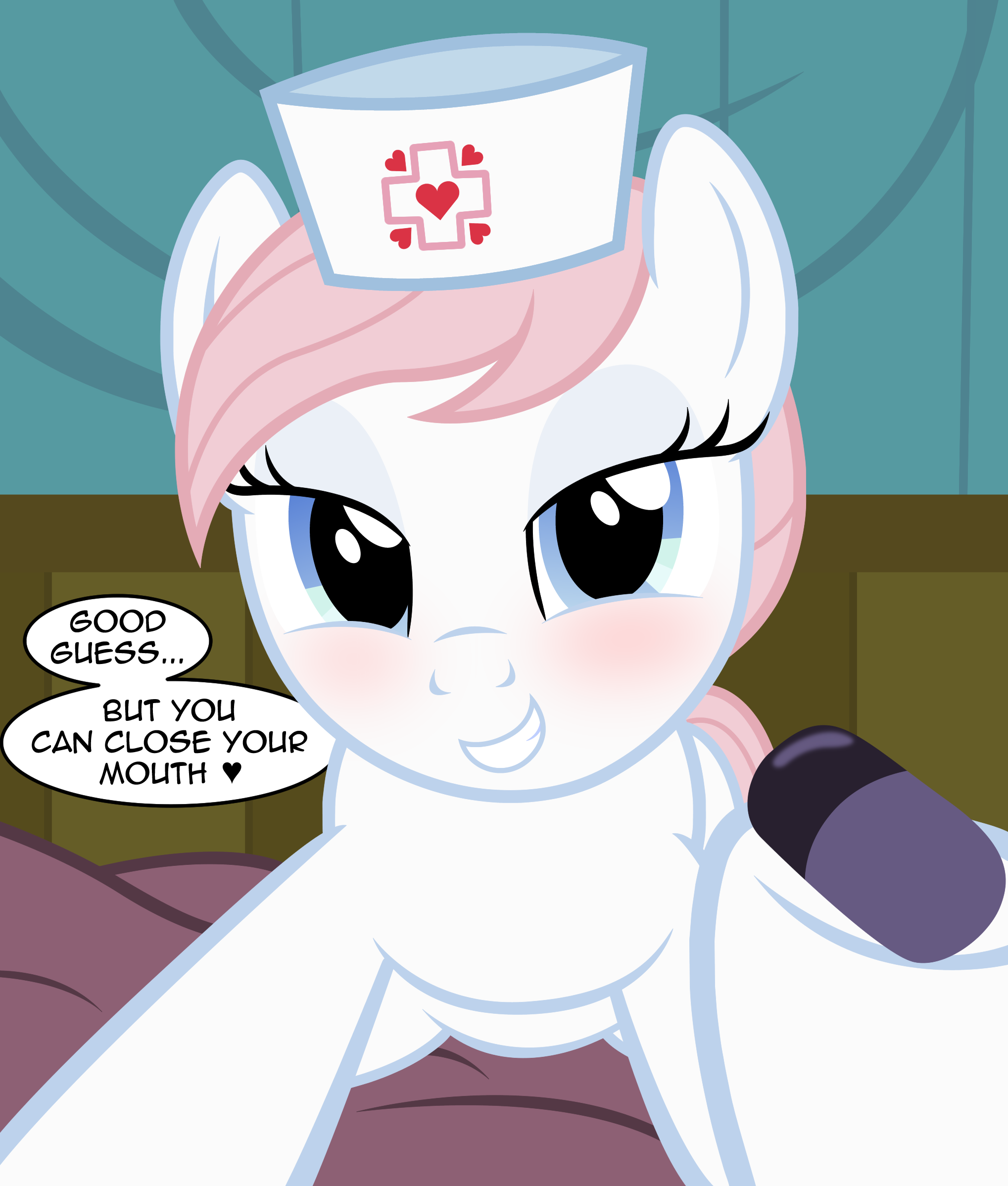 >>42935401That'd be fucking awesome>>42935497Not really. Nurse Redheart doesn't have red hearts on her. It's a joke about how they're both white blue-eyed ponies with cross and heart themed cutie marks. Said ponies also have some beef with the Geneva Conventions