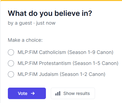 now on reddit: https://www.reddit.com/r/MyLittleMemes/comments/1q81fwi/which_denomination_do_you_belong_to/?utm_source=share&utm_medium=web3x&utm_name=web3xcss&utm_term=1&utm_content=share_button