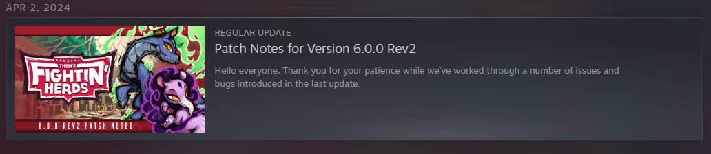 >Patch Notes: http://store.steampowered.com/news/?appids=574980