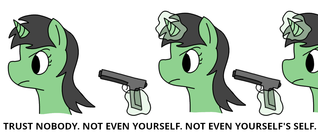 That being said, you could just excuse the redirecting tk field as vector swapping, it's not fancy shmancy math, you do it all the time when breathing (the direction of movement of the air particles, and your diaphragm), moving (self explanatory), throwing stuff (went from a vector aiming down due to gravity to one moving forward and up), etc. Hit a ball with a bat? You redirected that vector from straight to you to somewhere in front of you (at the cost of some speed, cause you didn't actually redirected it in this case, you nullified it and applied a new one). You could even argue that TK fields ARE vector fuckery, but it's so instinctual to ponies that they don't notice they're doing it.