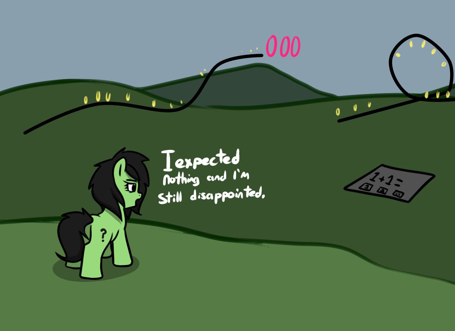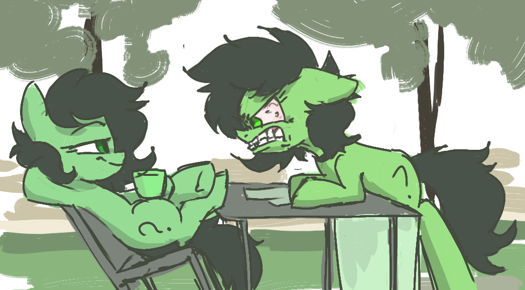 Fair criticisms, the idea was Anon facehoofed before remembering she had crap stuck to that hoof and everything after that was chaos and pain. I dunno how to make that more clear but it's clear it needs to be more clear (clearly)