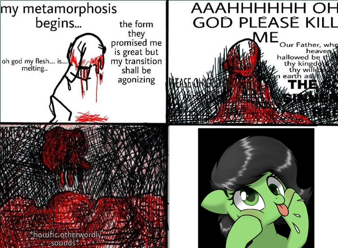 >>42943919Abuse? Nah, you want to give me a boner or what? Nightmare fuel can only be achieved through longer engagement in the medium. So give me a MLP horror movie, yup, or a story that gives you the existential shivers; complete DREAD.>>42943949NOOOOOOOOOOO! Rarity, stop corking your little sister!!