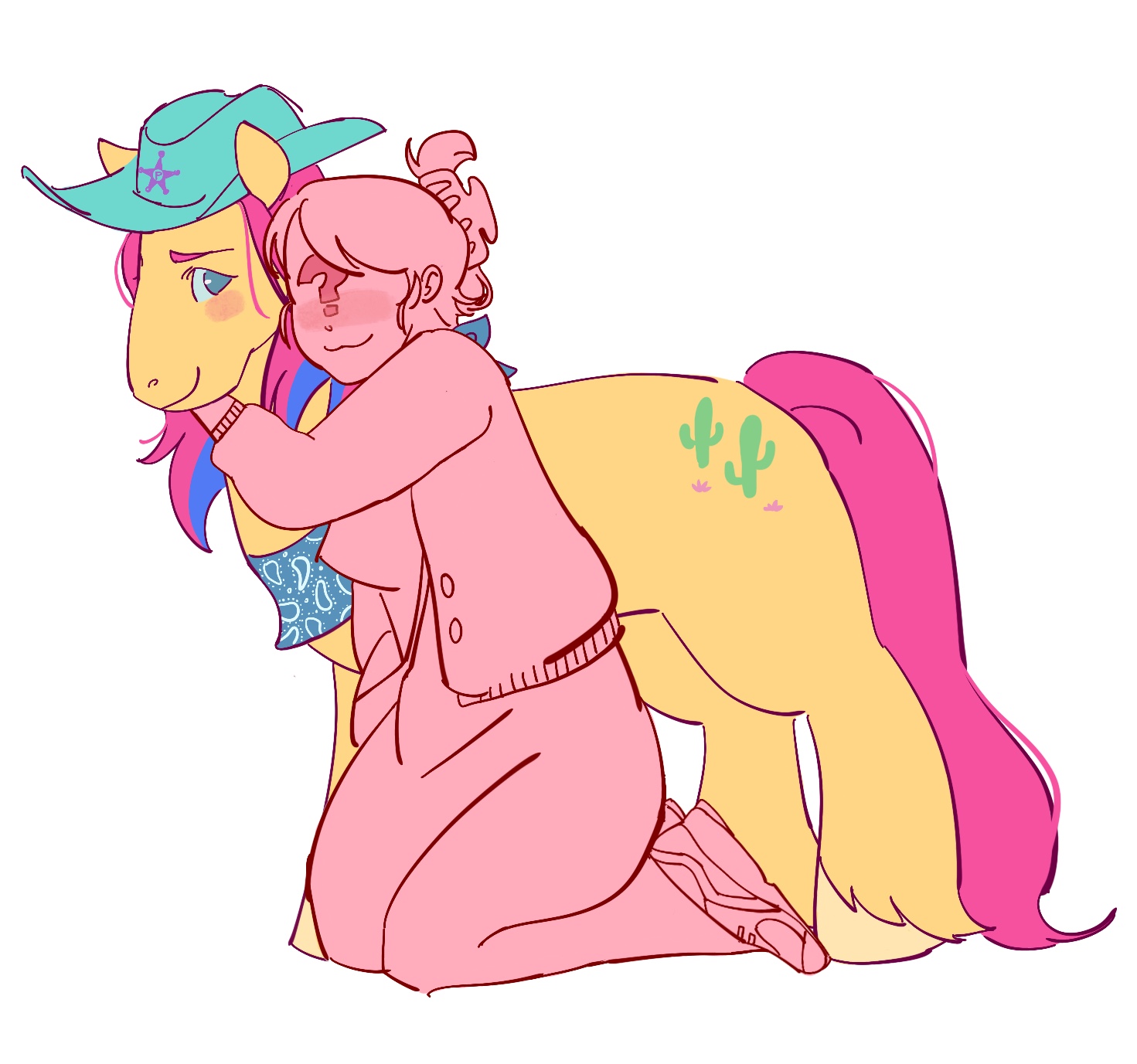 >>42940843>Jeff gives Twilight a suspicious scowl>He wants to maintain decorum between them and extend another hand in goodwill"Do i have your word that you will not attempt to escape princess?">Twilight, despite it being her duty to escape feels the fate of Equestria lies in her hooves>She must make sure this human trusts her enough to never use the portal>For the fate of Equestria, she swallows her pride once more"As the Princess of Friendship, you have my word. I just hope some mutual trust will go a long way in making sure everypony is safe.">Jeff feels at ease with Twilight, despite everything he's done, enslaving her kind, kidnapping her, and calling her names, tagging her like cattle, despite everything she is still amicable>Jeff takes a breath and finishes his last cup of coffee"You keep me to my word, I'll keep you to yours. We will go to the portal tonight and i will tell you everything i see, and hopefully we will come to a mutual understanding. That sound good to you Princess?">With a smile Twilight glows with hope>maybe there can be a peaceful resolution after all,>She dreams of all the ponies brought home, their worlds safe from King Mahrek. "That sounds wonderful, I can't wait. Maybe we can finally shed some light on this mystery">Even Jeff gets a smile, even if this only ends the visions, he would be happy"Well then, i look forward to it princess, I'll have to come back for you this evening, till then I'll have to keep you locked up in here, it'll be more comfortable than the stables atleast.">There's a knock on the door as Jeff gets up with annoyance"Oh, what now! Can't those mouth breathers go 2 seconds without my input">He opens the door to see a nervous ranch hand with a particularly excited teal mare"Well, out with it, the hell you want Chris?">Twilight looks over to see Lyra giddy with delight "I don't have an explanation for it boss but uh, i was on my way to the town and uh this one started following me">Jeff looks down at Lyra trying to nose her way in to see what a human house looks like"Does she know what this is about?">Chris stammers just pointing to her"I don't know what's wrong with this one, i told her i was going to make her a pet and she started following me. Its uh, kinda adorable, i was wondering if i could uh, keep her?>Jeff pinches his eyebrows with frustration "No, put her in the stables with the others and claim your bounty">Despite the pleading from the pony and ranch hand Jeff closes the door looking over to Twilight shuffling in her chair pretending to have not noticed"Do you know that one princess?">Twilight taps her hooves together"That's Lyra, she's a bit...fascinated with humans">Jeff nods with understanding "I see, I'll be back later Princess">Jeff explains going back to his business on the ranch