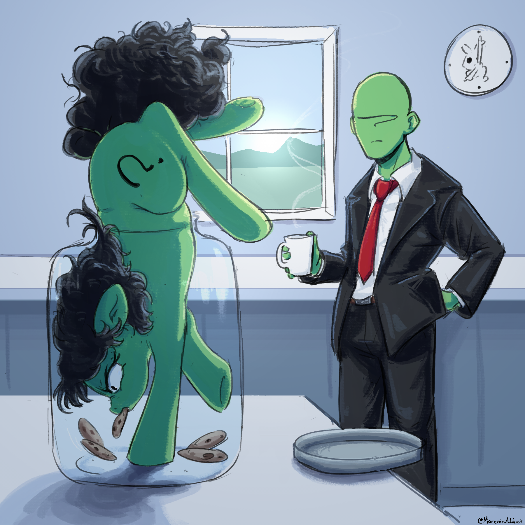 >Anonmare finally made it to the anon meetup. Anon(guy) and Anonstallion were already there to greet her.>"Hey Mare, make yourself comfortable, we got plenty of snacks. And uh, don't worry about the other anons, just... move them out of the way if you need to.">What?>Once inside she took one look at the couch and realised what Anon was talking about.>There was a greenish rock and a small green puzzle piece just left sitting on the couch.>The rock vibrated.>"Sup.">Holy shit it can talk.>Turns out being turned into a mare wasn't the worst fate she could have ended up with.