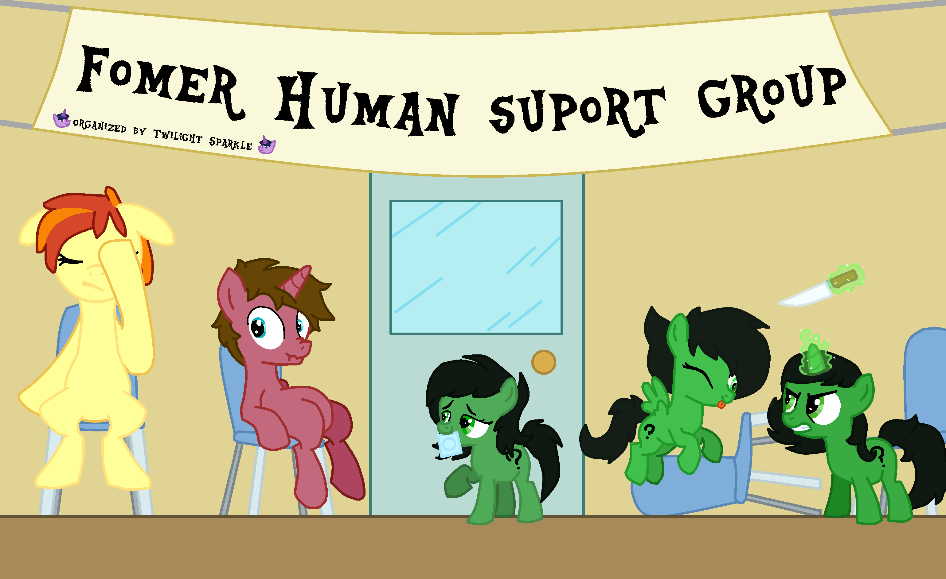 >>42943066The lore was kind of established over time, growing out of the 'speed dating' thing here.>>42942061There's a 'pegasisterhood' organization eventually. And they take over the world eventually. The ground zero origins have never been firmly established, though.