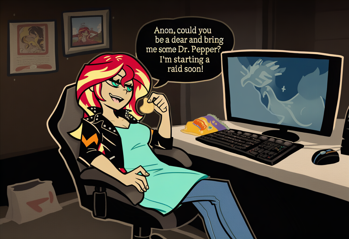 >>43035772>listening to your sister's stream while at work but can't actively watch>she sounds like she's joking around and having a good time>chill vibes>then your other sister comes home from a late night at the club and is invited on stream>things quickly turn... well, they sound like they turn somewhere, alright>by the way she sounds, Vinyl is clearly still drunk>or high>probably both>sounds like she's getting really touchy feely while Sunset is trying to game>teasing and "tickling" her sister while the other tries to laugh it off, suppressing her whimpers when the touching probably gets a little more explorative>the sounds they let out on stream stir something inside you>you want to look but you're busy with work>it only gets worse when it sounds like Sunset is done being played with and goes on the attack>they wrestle with each other, bumping the mic and falling over with a crash>it sounds like they are fighting>until you hear giggles>kissing and moaning>wet sounds>you have no idea what your boss just stopped by to tell you because it was all you could hear in your ears through the earbuds>but suddenly the mood gets a lot more tender>and sensual>they tease and taunt and turn over on the floor>the chat is going wild with donation sounds and TTS messages asking what's going on>some chatter named "PoofyCQueen" or something rapidly spamming donations one after another to beg for permission for something>apparently to the point of being timed out by the mods>by the time lunch comes around you can't take it anymore>you clock out and take off for the bathroom>locking yourself in a stall and finally pulling out your phone>only to see the stream had been banned