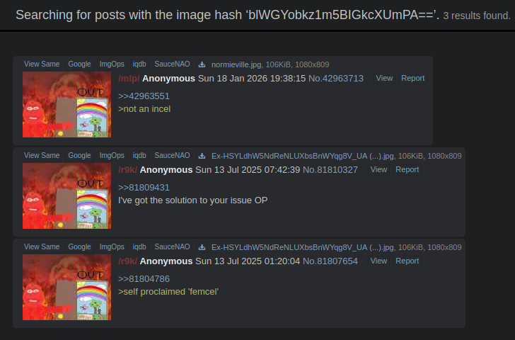 >>42963713>hash of his variation of the image comes from /r9k/based incel