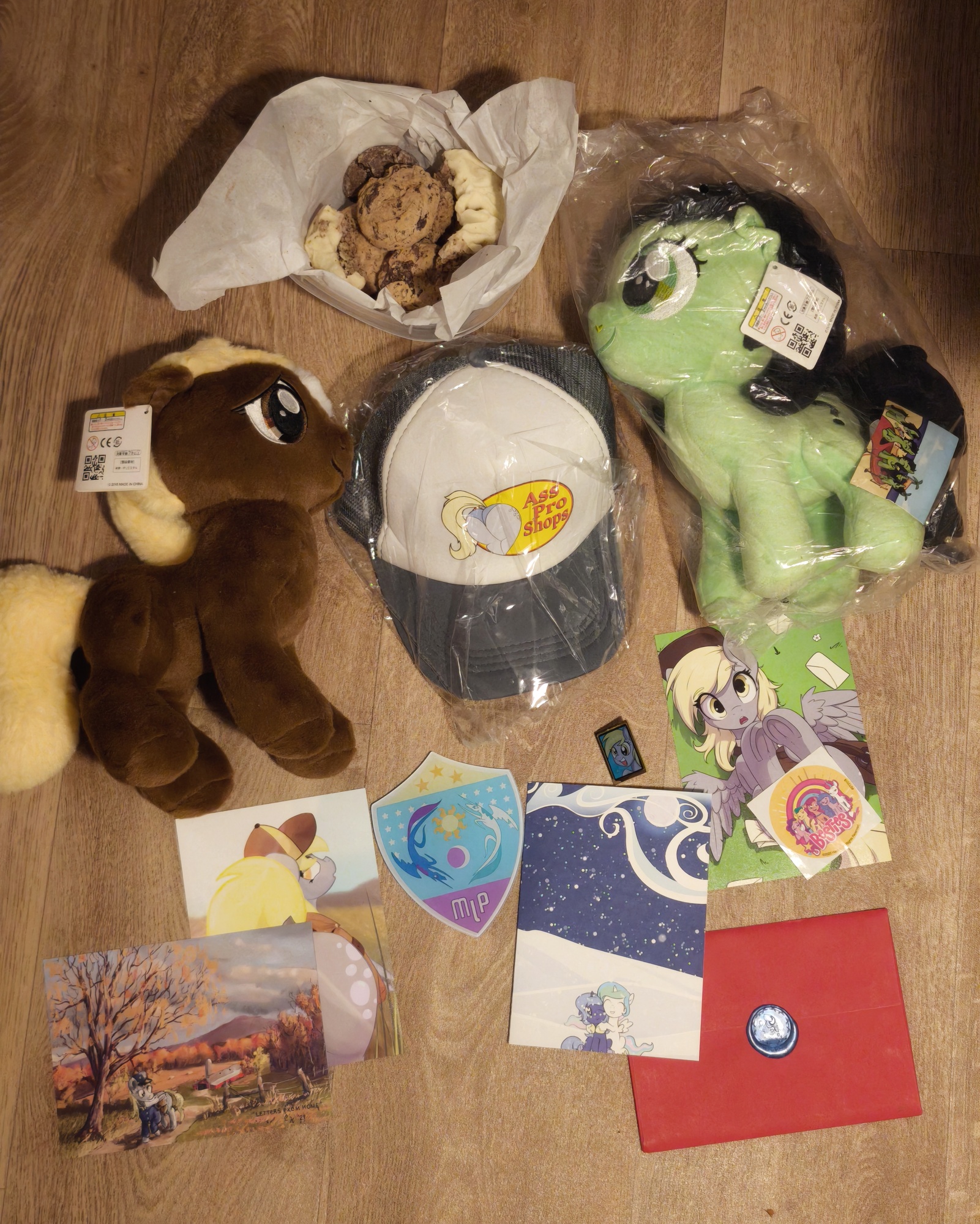 Good thing I didnt pack the Horsemas tree away yet, because an absolute unit of a card arrived today from Bad Medicine.Thank you for the incredible box cheer, your "card" is more than some people get in the main gift! Despite the package taking a while to arrive, everything came fine and unspoiled. I did inspect the month old cookies thoroughly before eating a couple and they are still great and very yummy! You are right, I could always use more fillies in my green army. Verity will get plenty of cuddles too! Thank you for all the other stuff too, the magnet is on the fridge already, for the nice card and message and the prints, unf, jannies avert your eyes. Oh and the hat! I regretted not picking one up at marefair and now I get to proudly rock mare ass on my head, awesome!I hope you had comfy horsemas and nice start of the new year, cheers!