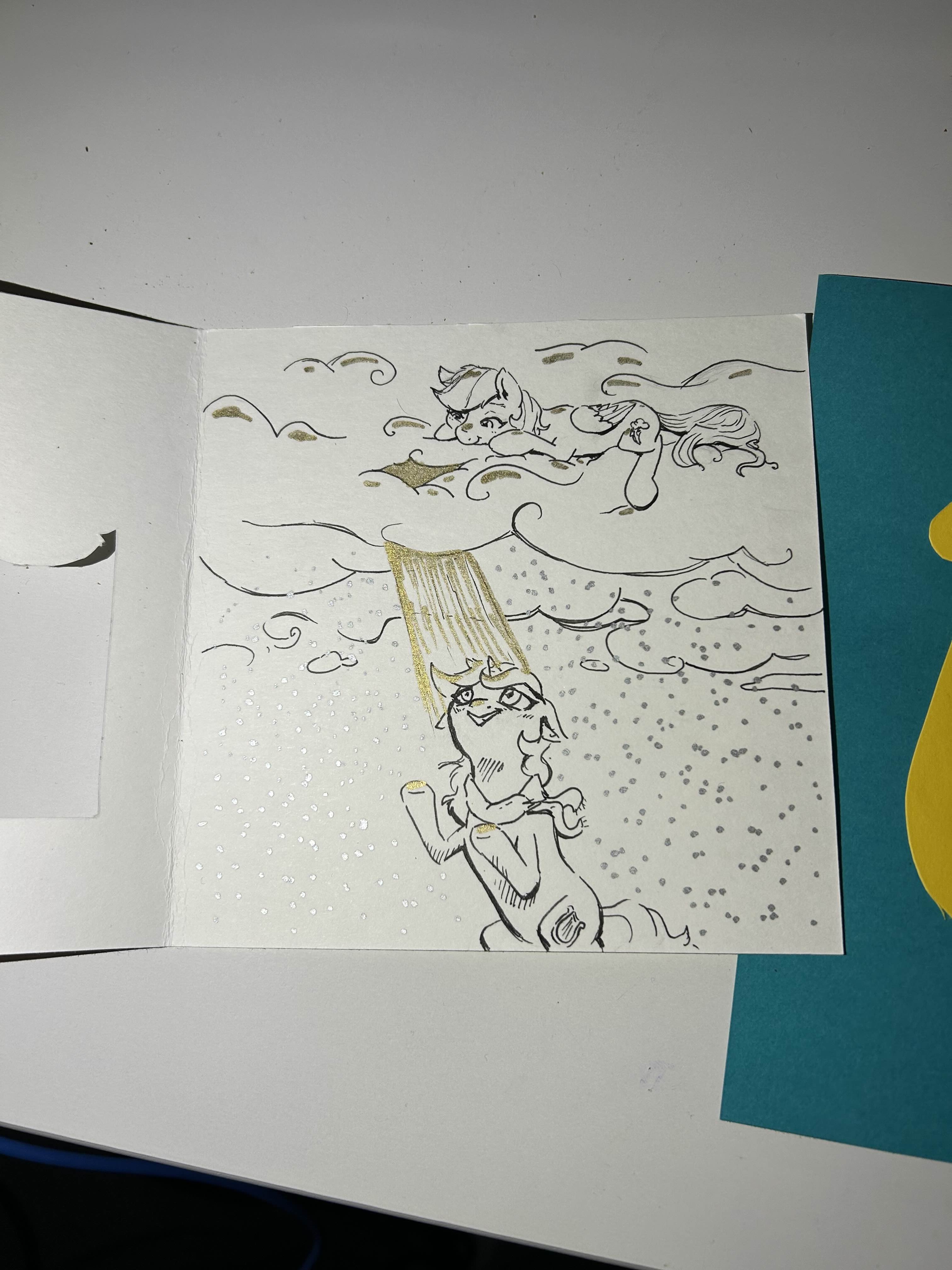High Noon the Kirin and Fluster Dust, your cards both arrived today. Thank you!High Noon the Kirin, I have no idea why yours took so long to get here, because it is postmarked 9 December. Thank you for the lovely handmade cutie mark. Yes I did have my beans on toast today :)Fluster Dust - the drawing is beautiful, thank you. :)I hope you both got my cards okay :)