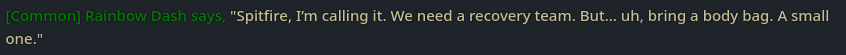 Screenshots corner 2:Aromarevelous >>42953652Don't go into the light >>42954082Girls and bones >>42954320Da Lore >>42954605Sonic Rainboom gossips >>42954870Classic >>42955099Craven Cur >>42955110, >>42955164