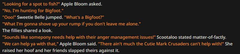 Screenshots corner 4:Pirates >>42958006Sharing something special >>42958750Luna Poetry >>42959101Taking the Carousel for a spin >>42960487The Anon >>42961983Future Twilights >>42963080, >>42963568The wrong Apple >>42963585Beating together >>42964082