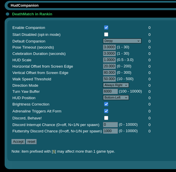 >>42984069>>42982637Still some issues I'm trying to fix. If anyone has suggestions for bounty configurations, let me know. I've got settings for vignette (colour, intensity/sensitivity), radar size, score settings (thresholds/multipliers/types), and I'm trying out a bonus score for killing the bounty now (default 0 I guess).