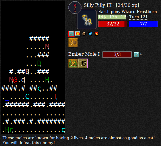 >>43001794Do you mean roguelike or roguelite?>roguelikeI'm only aware of PonyRL (I believe there's a download on desu somewhere, otherwise I have a copy on my PC and I could upload it if anypony is interested) and one game jam project https://carrotpone.itch.io/the-kirin-brews-some-tea.I've never heard about any forks of angband or nethack that are pony-themed, surprisingly.>rogueliteCrypt of the Necrodancer and Noita have great pony mods.