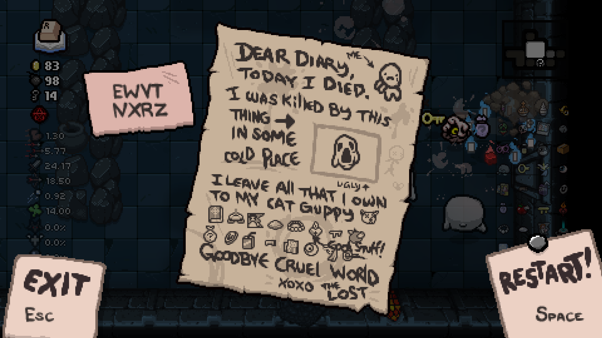 >>43011551>R key on tainted lost I remember once using it for emergency protection w/ panic buttonit did help me get the mega satan mark kek