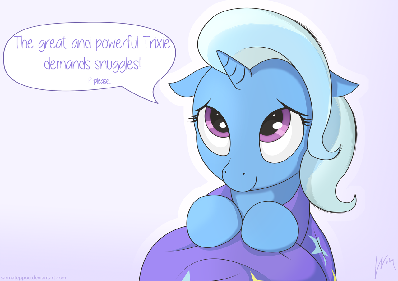No matter if you see her as poor and homeless, the daughter raised in trailer trash or the shadow of the lights of Las Pegasus, or whatever other headcanon you have for her, humanized or ponyfied, Trixie is cute, and must be protected.