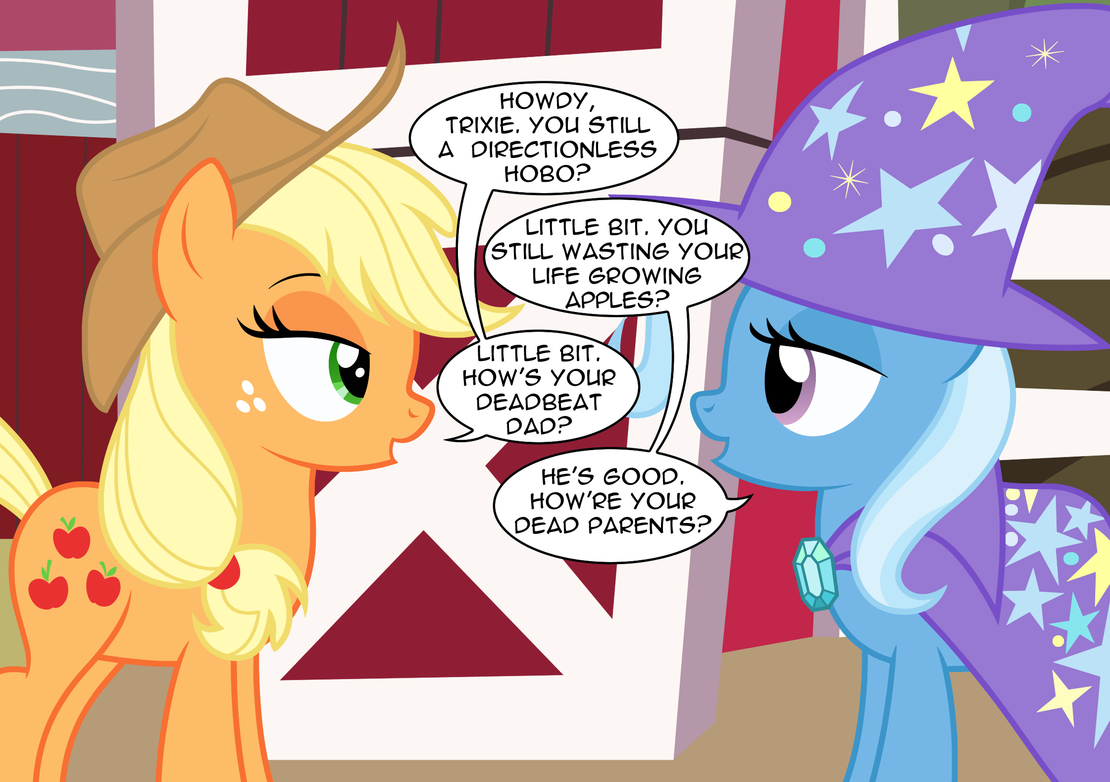 >>42999010Booking a room was Glimmer's idea. Trixie had planned for them to sleep in the wagon since the beginning>>42999989Her craft is cool as fuck and despite how underdeveloped she is in the social department, Trixie would be a ride or die marefriend judging by her relationship with Glimmer