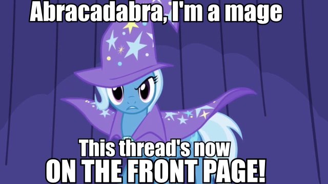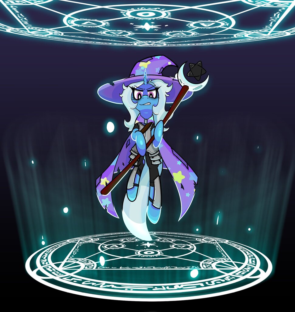 >>42984895>If you pump one out I'd definitely read it.>Be Trixie, wizard-hermit in northern Equestria>Got some kickass colorful tunics and hats and pointy, swirly shoes>Shit at magic, have to rely on alchemy and illusory spells and such to seem cool>Good at making a show tho, fo sho>Live in a tall, crumbling tower populated by homunculi you made personally>Only real company are from the stores in Vanhoover you visit or convening spirits from Tartarus>The wild faeries are neat but dangerous>Suddenly, Anonstallion>Knight? Would-be apprentice? His own brand of hedge mage?I can be a good ideaguy when I want to be but I find more entertainment in mindfully fleshing ideas out than writing them down, ironic to what I'd posted earlier.
